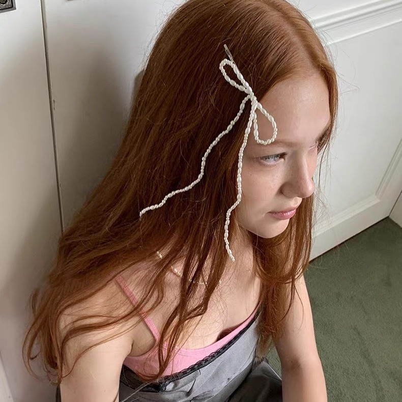 复古珍珠蝴蝶结发夹