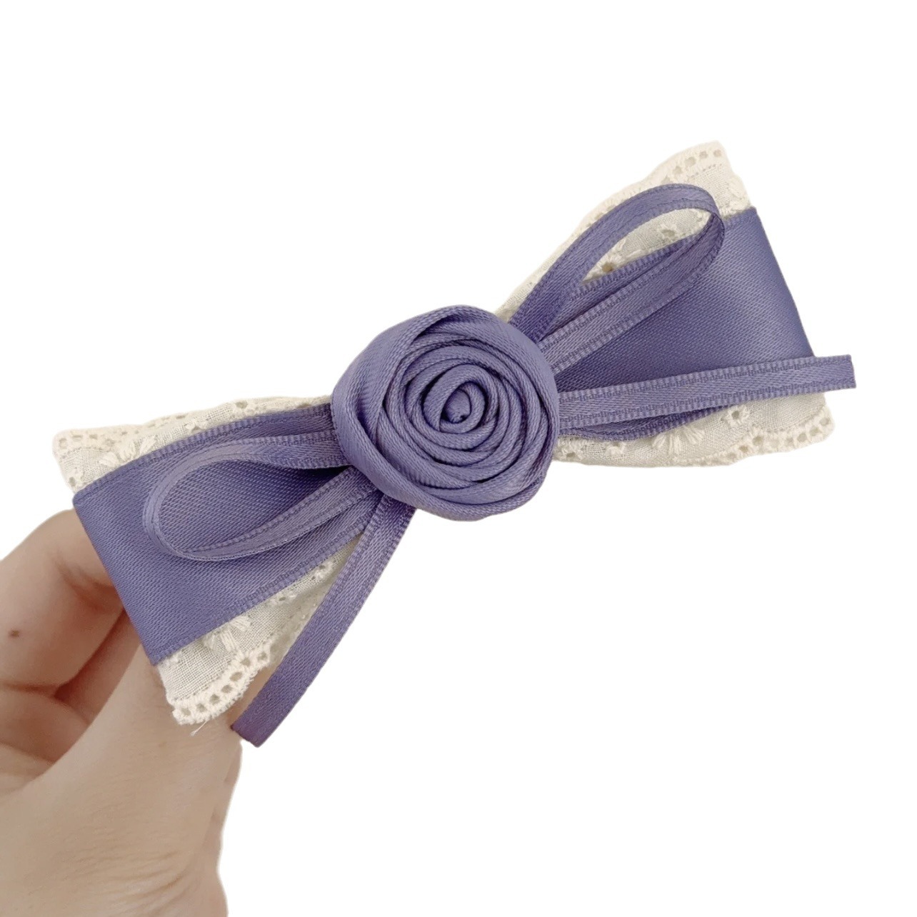 法式雾霾紫玫瑰蝴蝶结蕾丝发夹温柔气质马尾夹后脑勺半扎发卡头饰