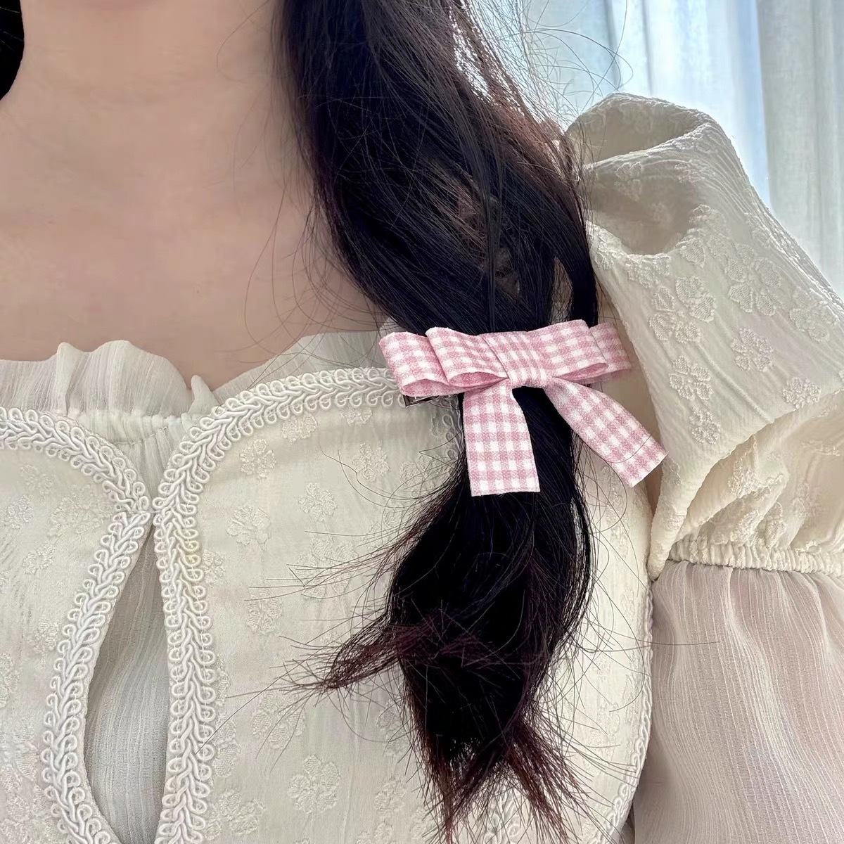温柔蝴蝶结格纹发夹小清新格子甜美显乖氛围感侧边夹少女学生发饰
