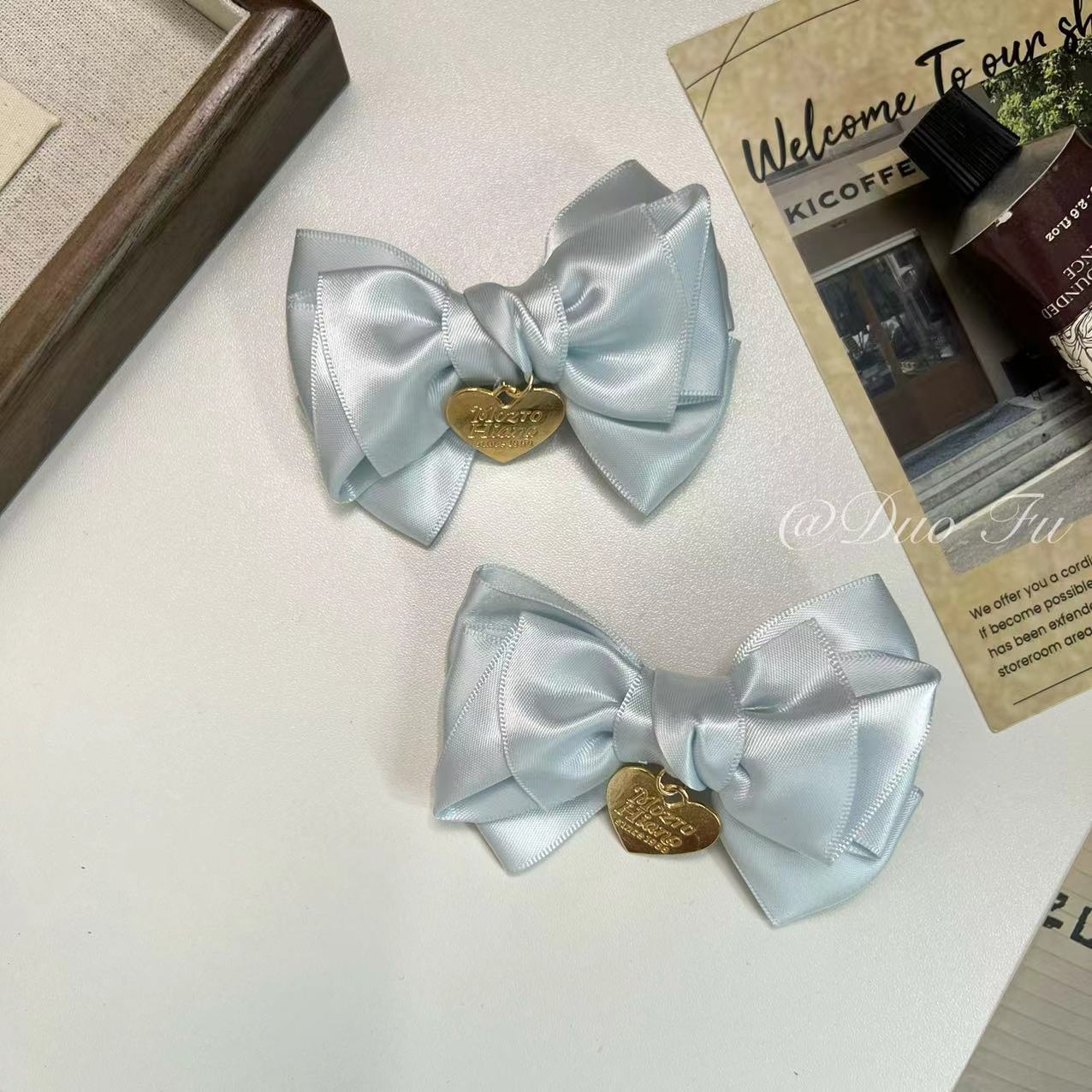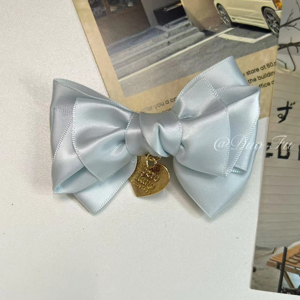 蓝色蝴蝶结金标爱心发夹