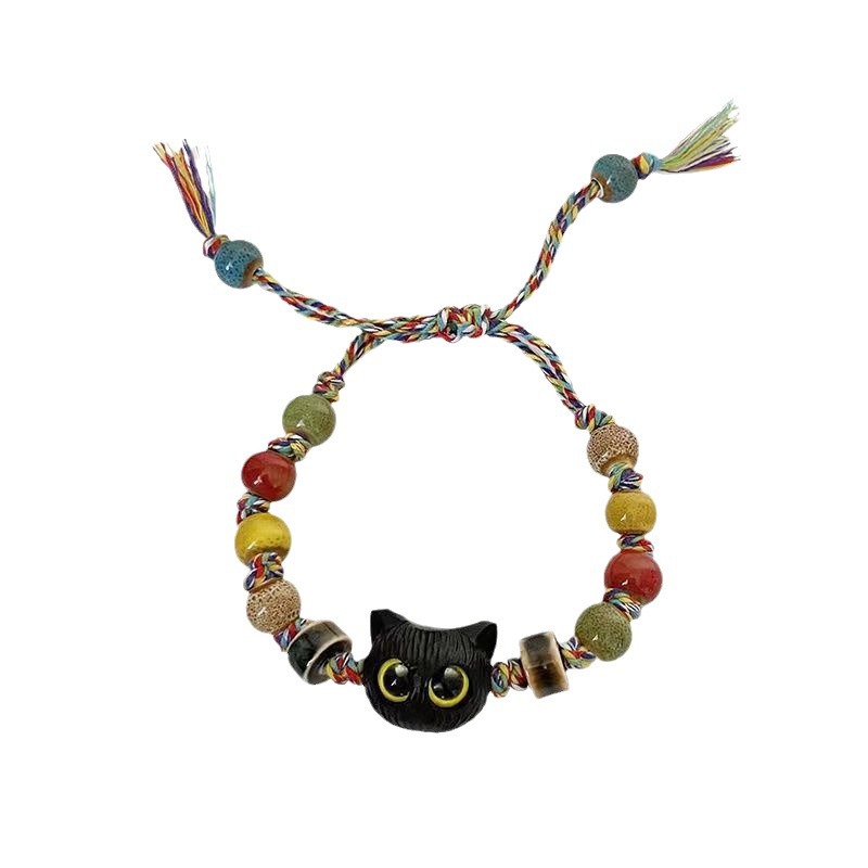 彩色陶瓷猫咪编织绳手链女复古风小众高级感甜酷手串学生闺蜜手饰