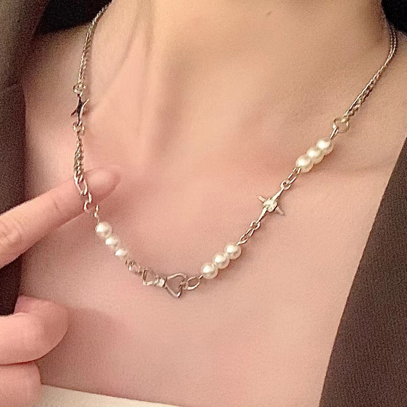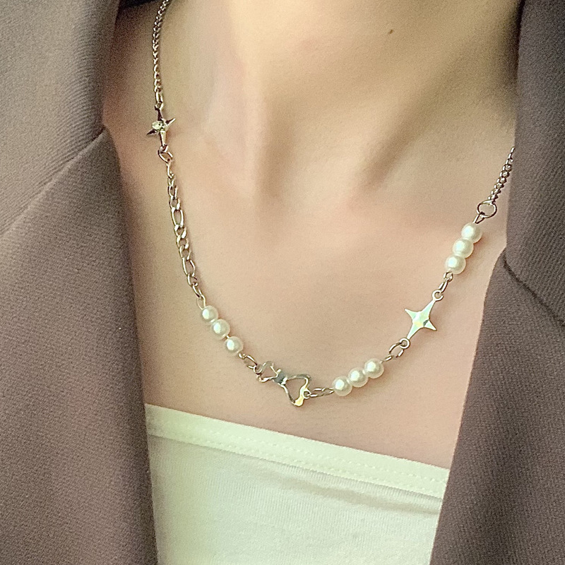 甜美珍珠拼接项链女轻奢小众蝴蝶结颈链ins高级设计感超仙锁骨链