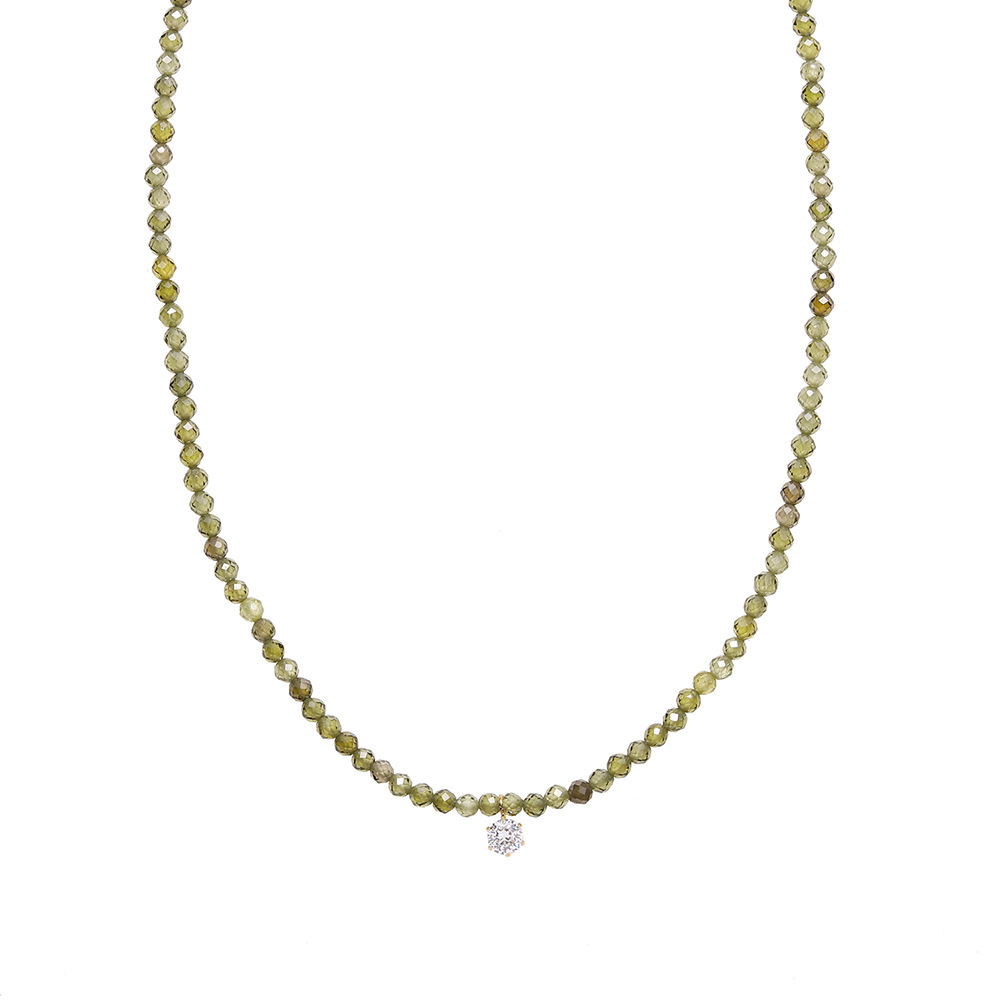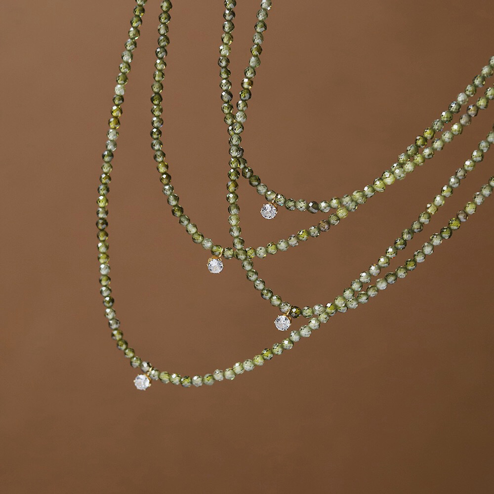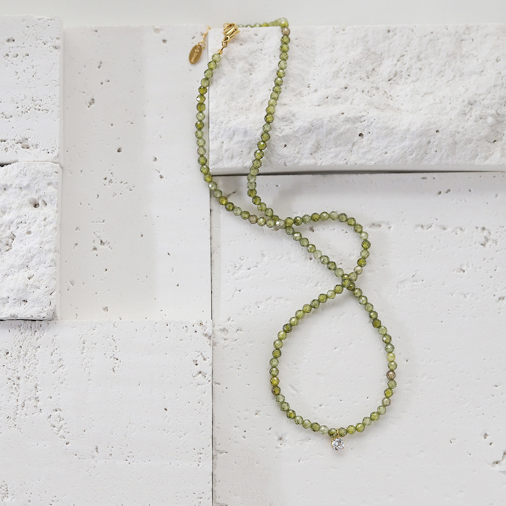 橄榄绿水晶切面项链-显白