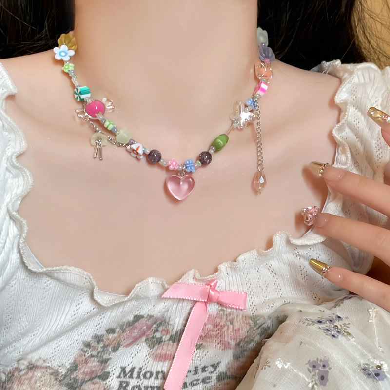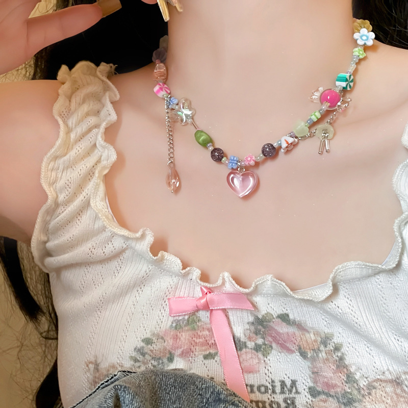 蜜桃粉!夏日多巴胺爱心糖果项链女小众设计甜酷辣妹锁骨链脖颈链