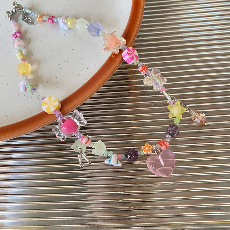 彩色串珠爱心项链