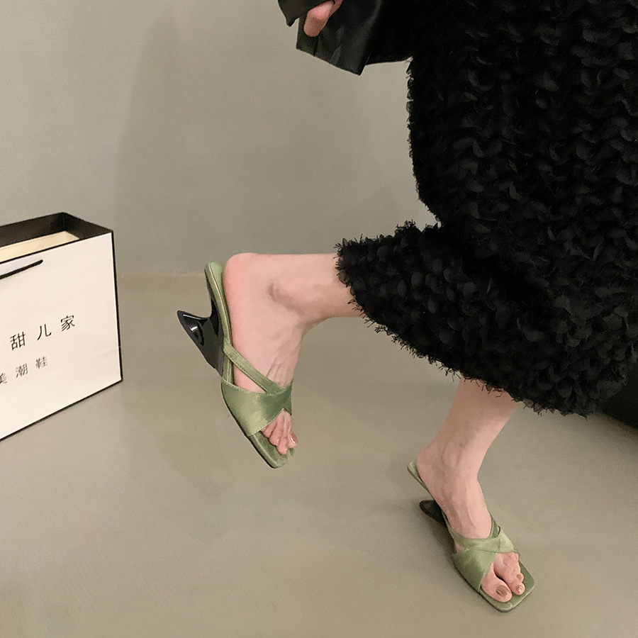 法式高跟小众拖鞋女鞋子夏季新款网红百搭外穿方头露趾凉拖