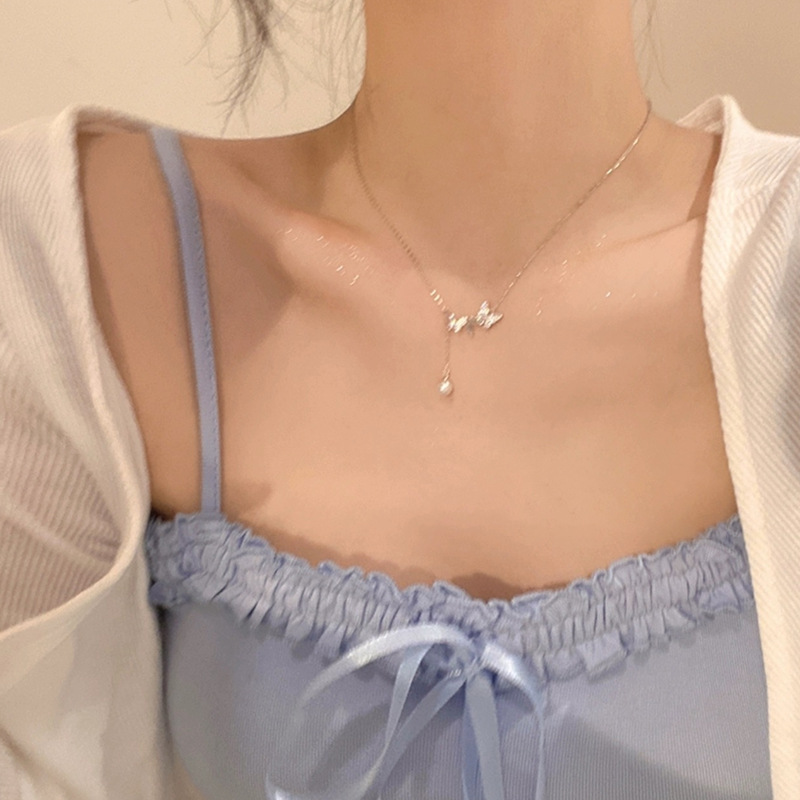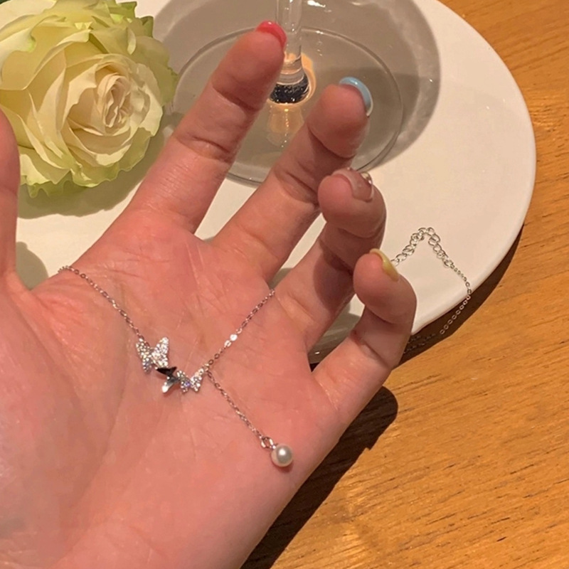 「翩翩起舞」ins小众设计轻奢精致珍珠蝴蝶项链气质网红锁骨链女~