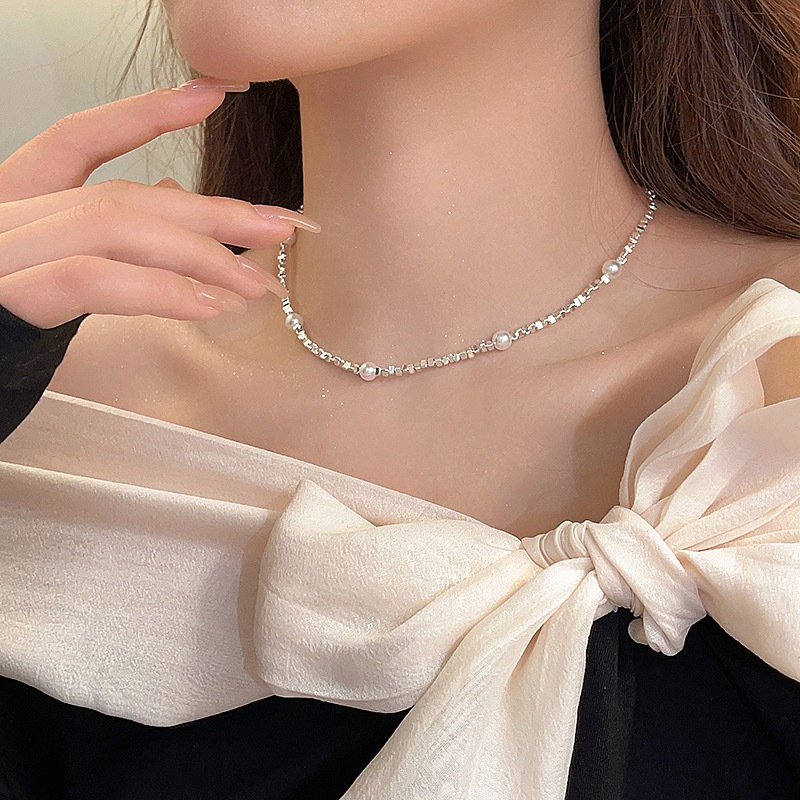 碎银子珍珠项链轻奢锁骨链小众设计高级感颈链年新款爆款配饰