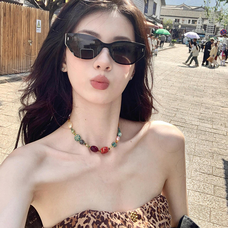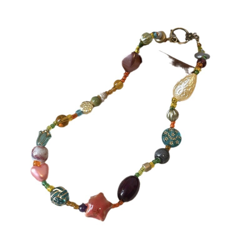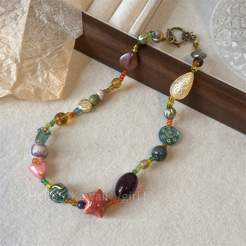彩色民族风多巴胺琉璃串珠星星项链女新中式复古小众设计锁骨颈链