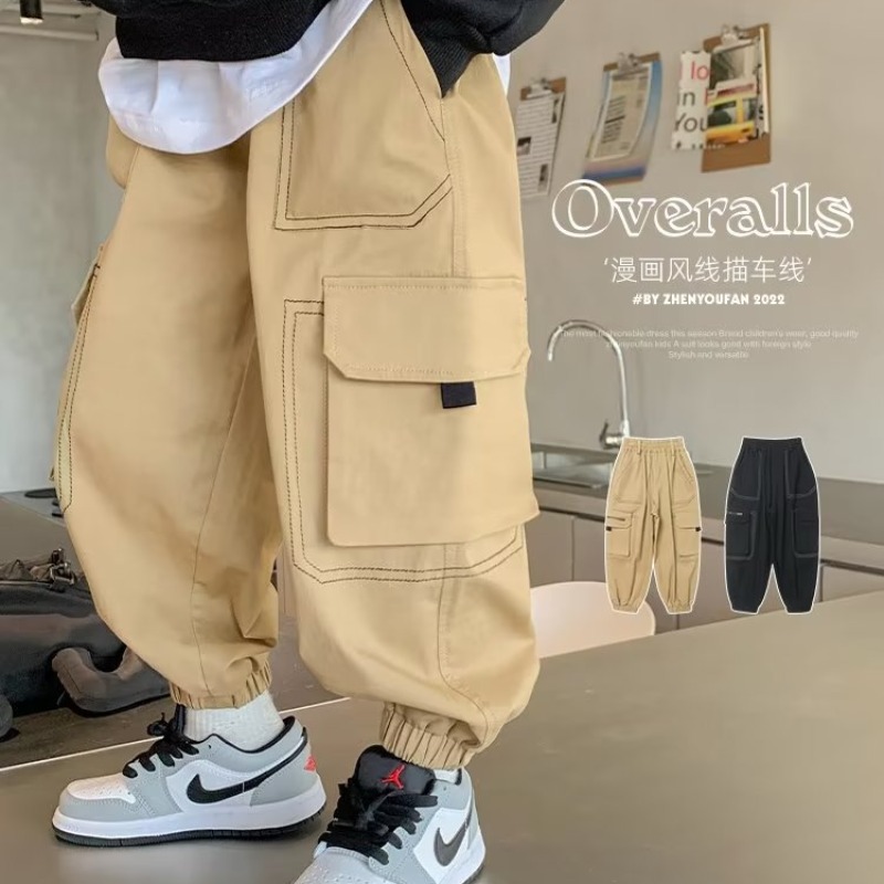 男童裤子春秋款新款潮帅气时髦宽松男孩秋装中大童儿童工装裤