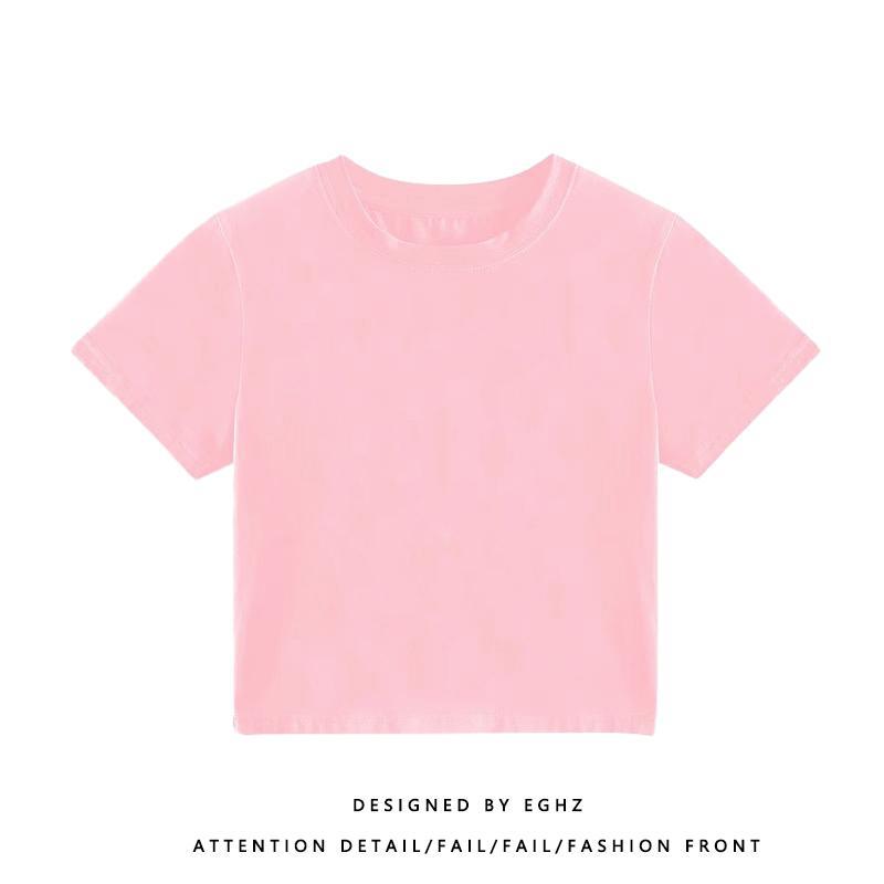 小个子粉色甜美风短款t恤女多巴胺短袖夏季jazz美式复古紧身上衣
