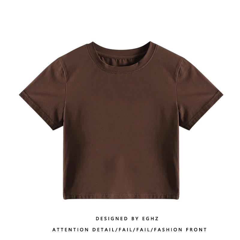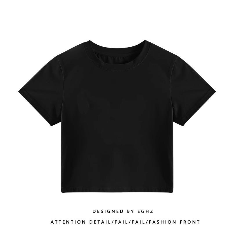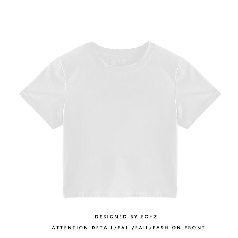 正肩T恤女装短袖修身高腰短款小个子纽扣体桖夏季新款上衣服ins潮