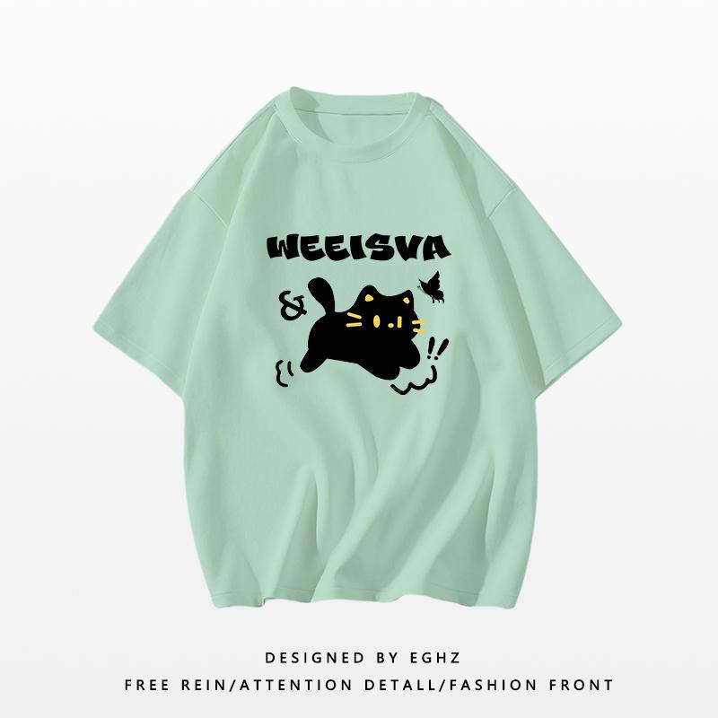 夏季新款印花半袖圆领休闲宽松情侣装字母短袖男女学生DT434