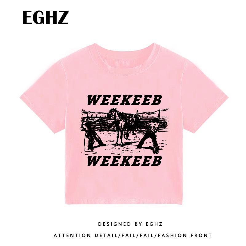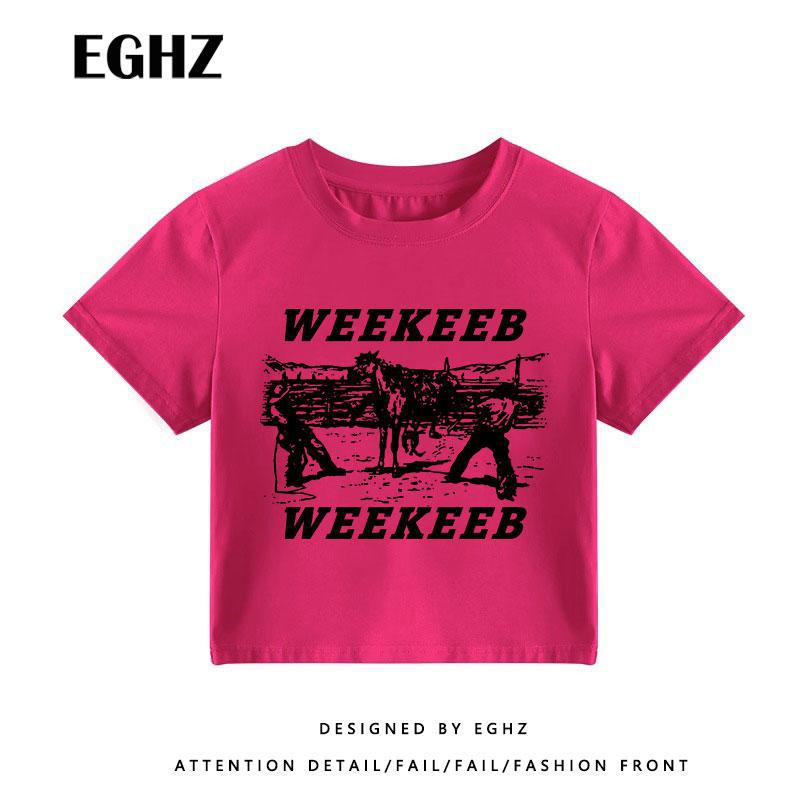 酒红色正肩短袖t恤女夏季复古bm高腰露脐甜辣jazz小个子短款上衣