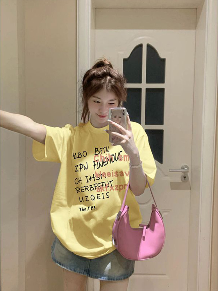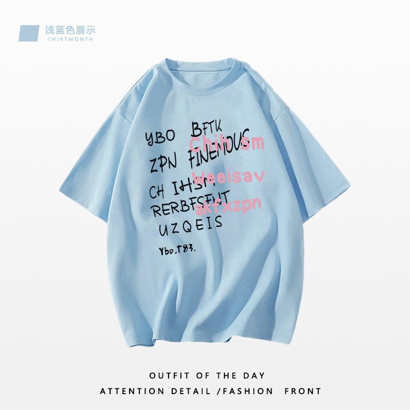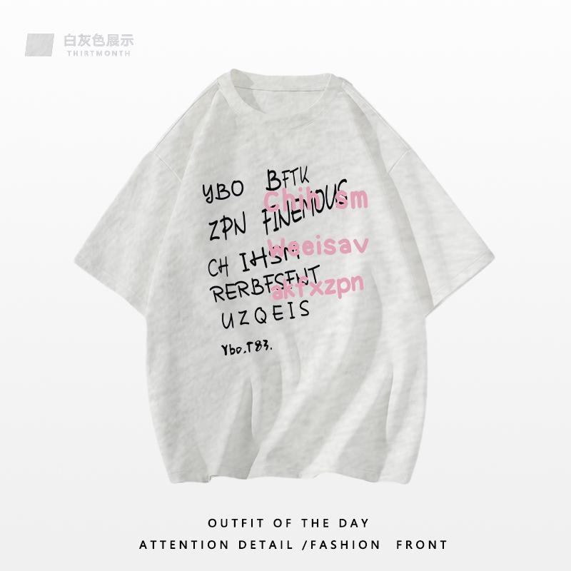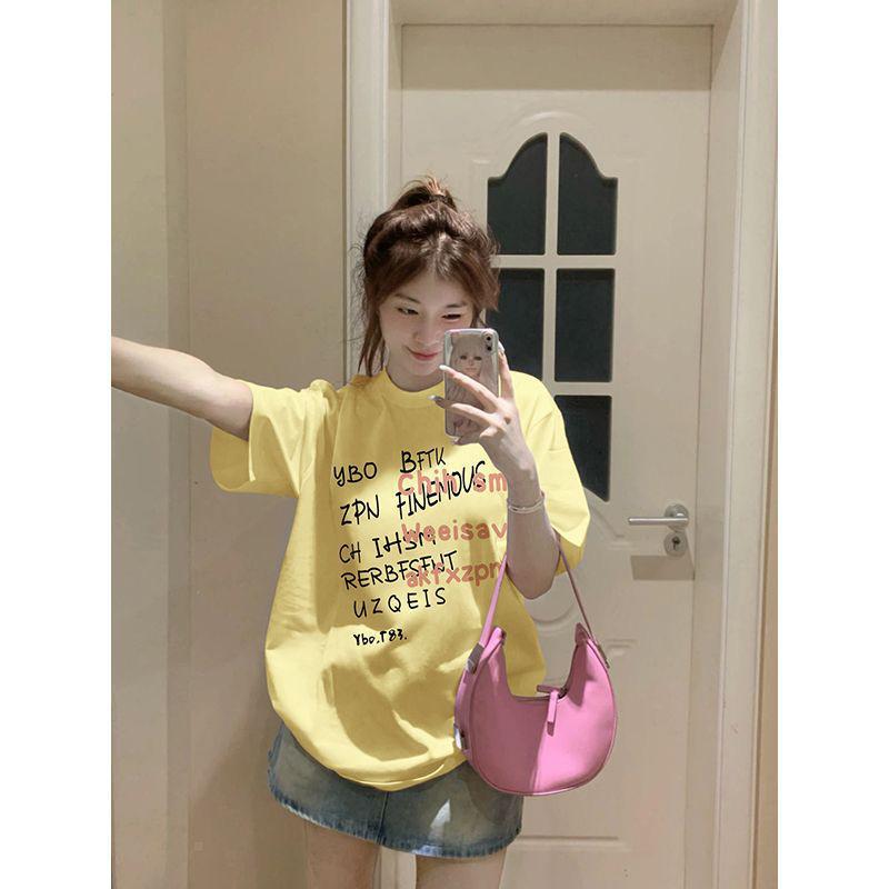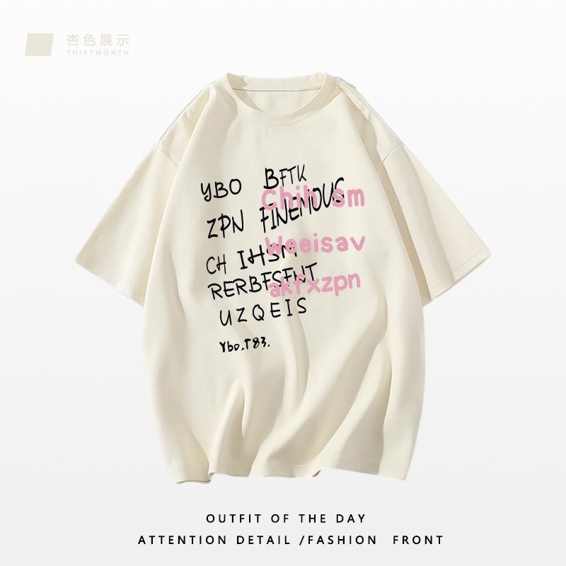 重磅纯棉短袖t恤女装新款夏季小众港味复古宽松半袖体恤上衣