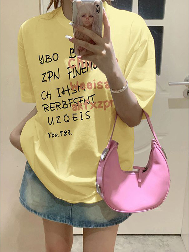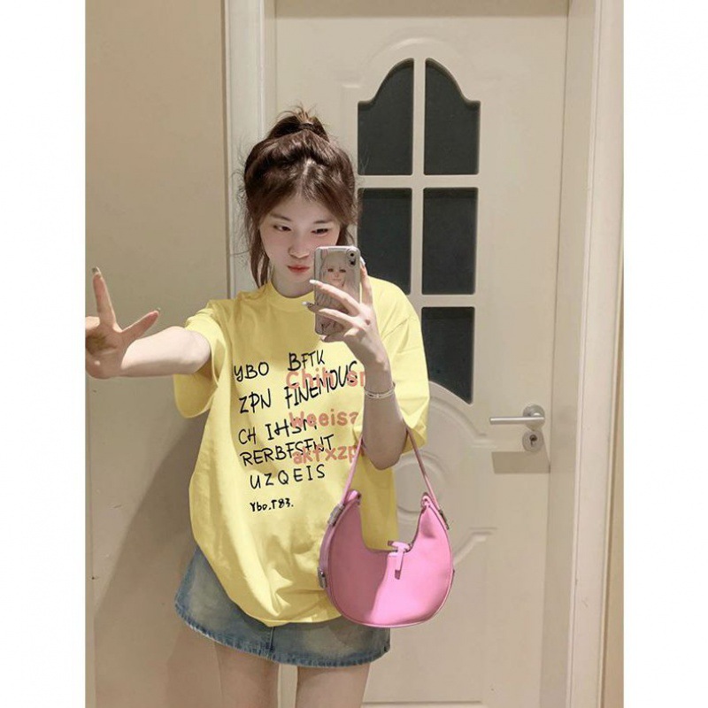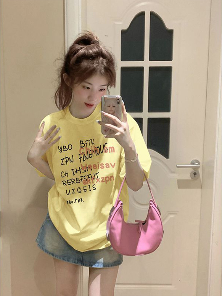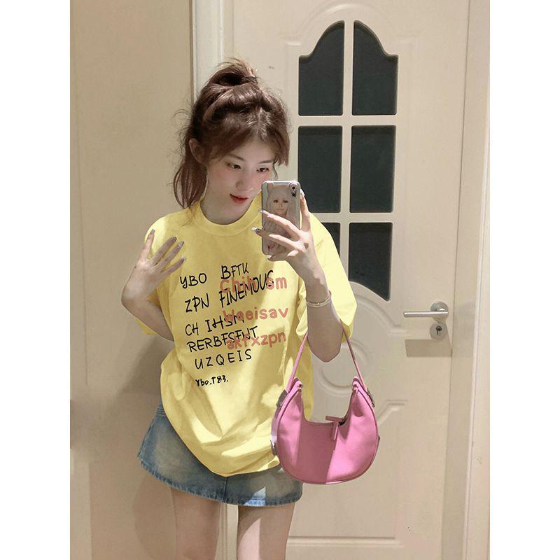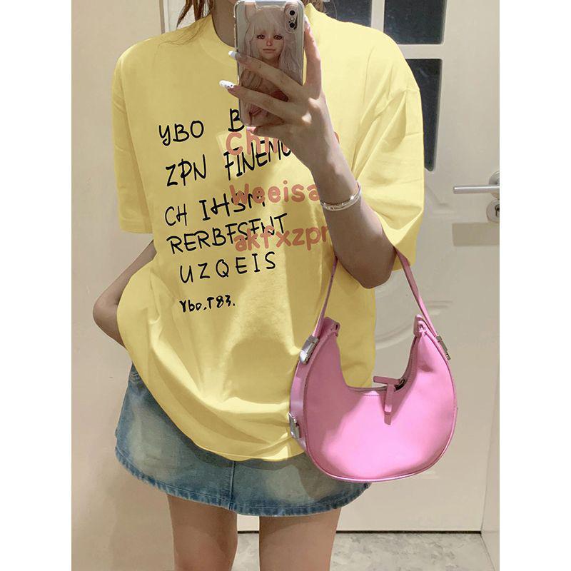 重磅纯棉短袖t恤女装新款夏季小众港味复古宽松半袖体恤上衣