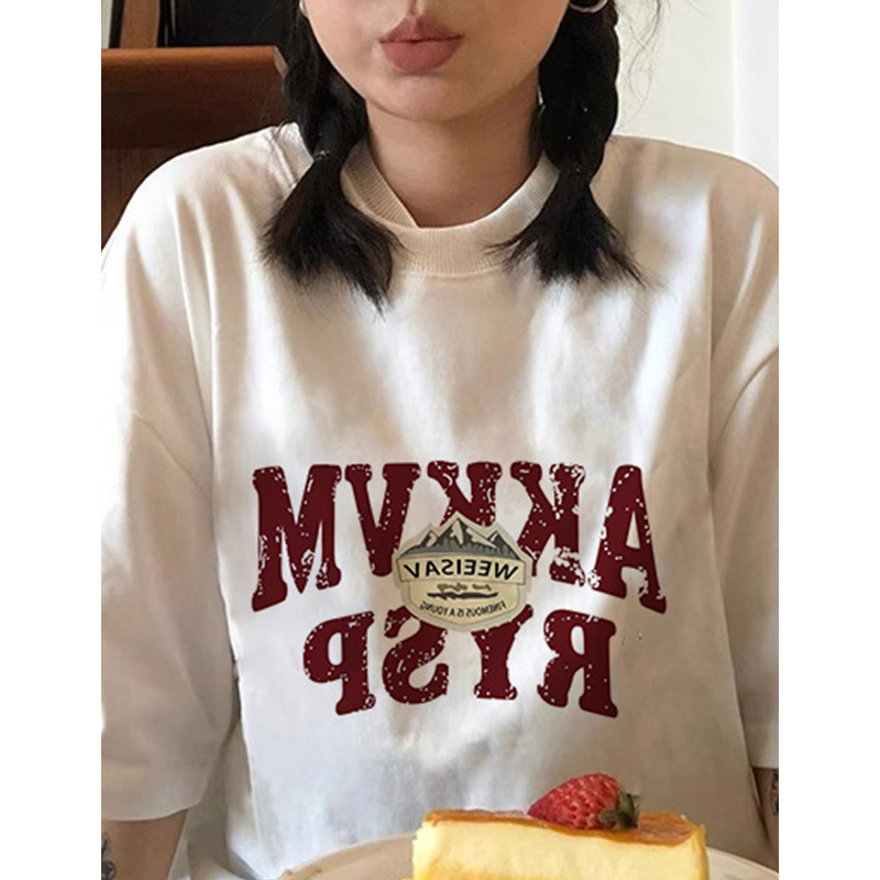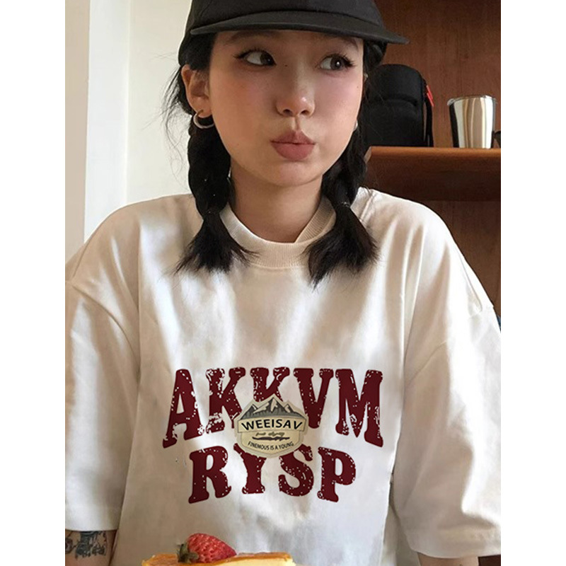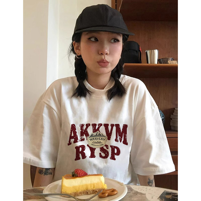 美式vintage白色棉短袖t恤女春季新款宽松百搭正肩上衣ins