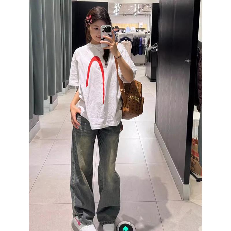 旧街小个子女孩百搭短袖宽松t恤美式复古水洗做旧上衣潮