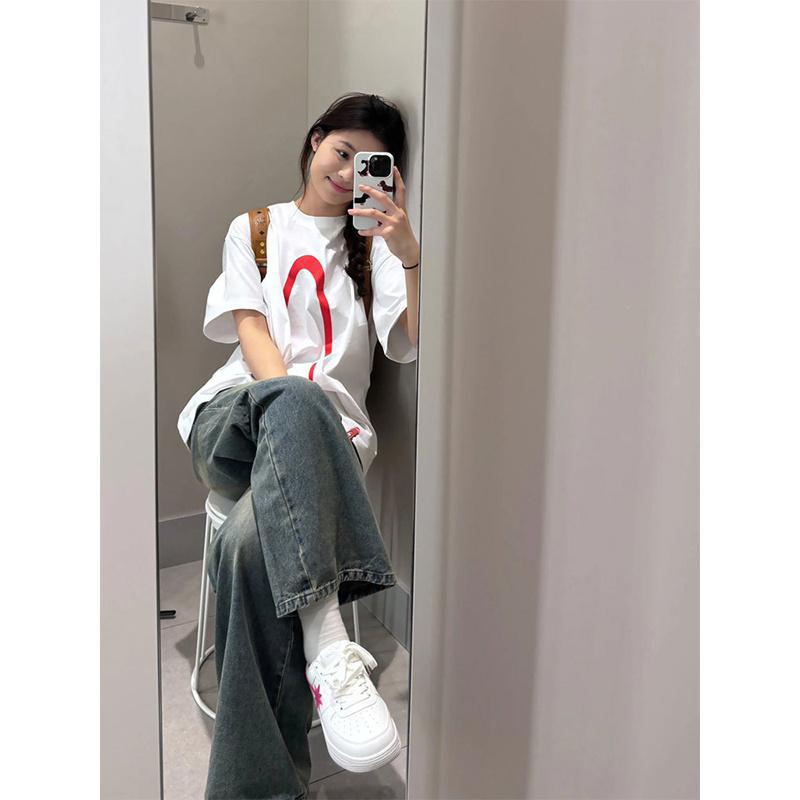 棉复古白色短袖t恤女夏季宽松oversize情侣装新款上衣