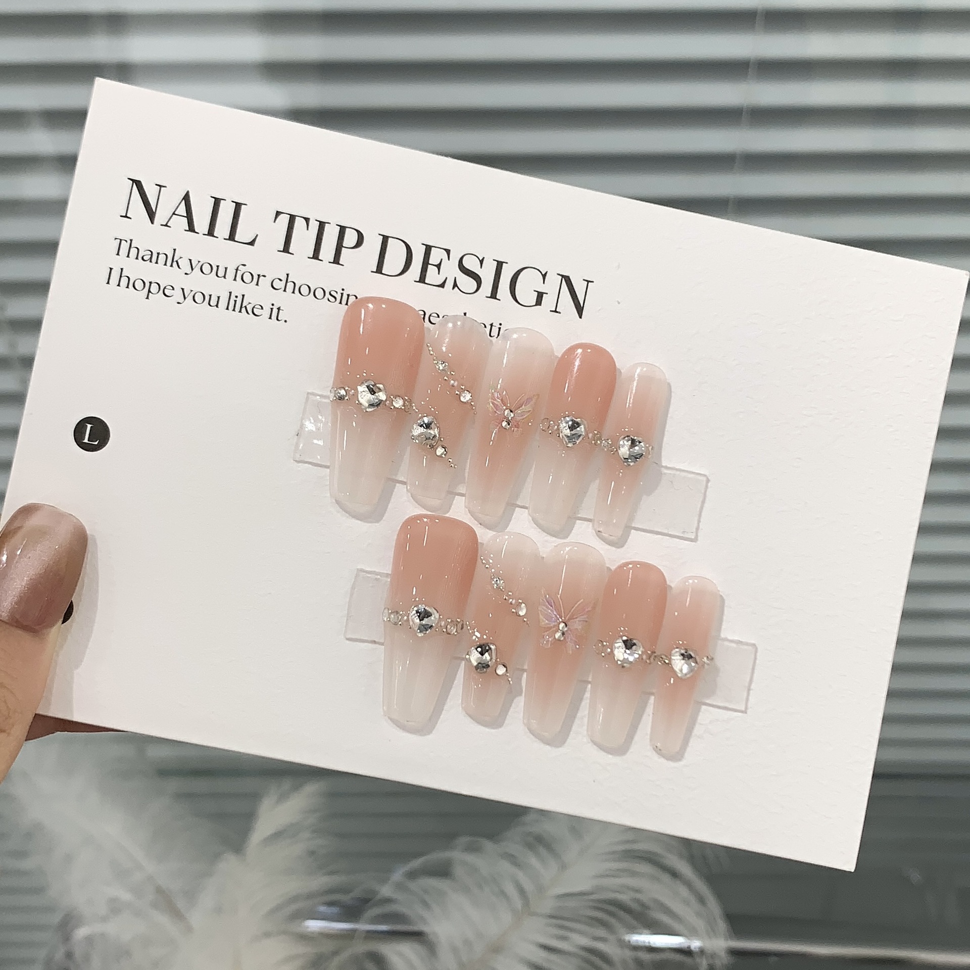 一只顾美甲【Y】 简约腮红晕染斜边链条浮雕蝴蝶奶香假期贴片穿