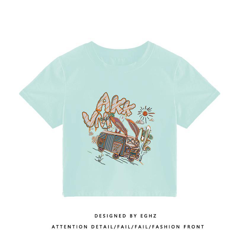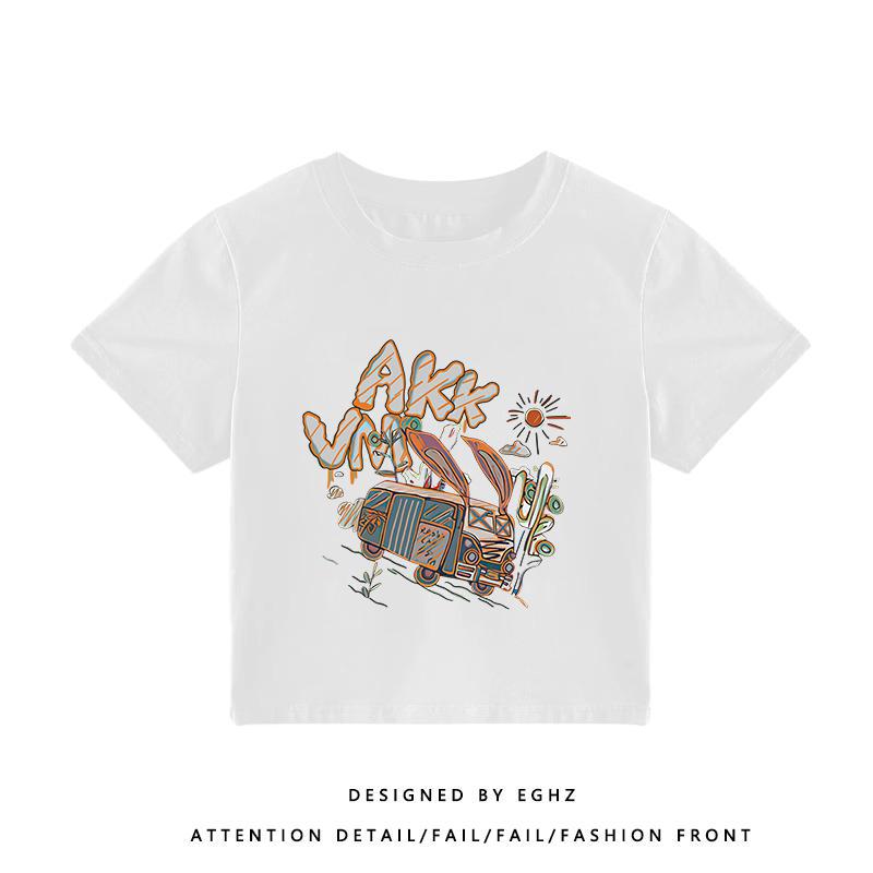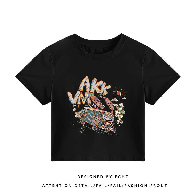美式高街设计感印花T恤男春夏新款圆领纯棉潮牌情侣同款短袖体恤