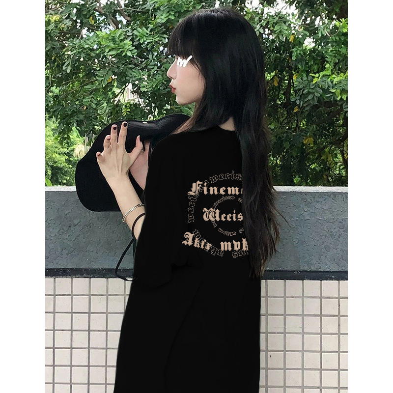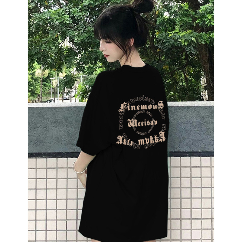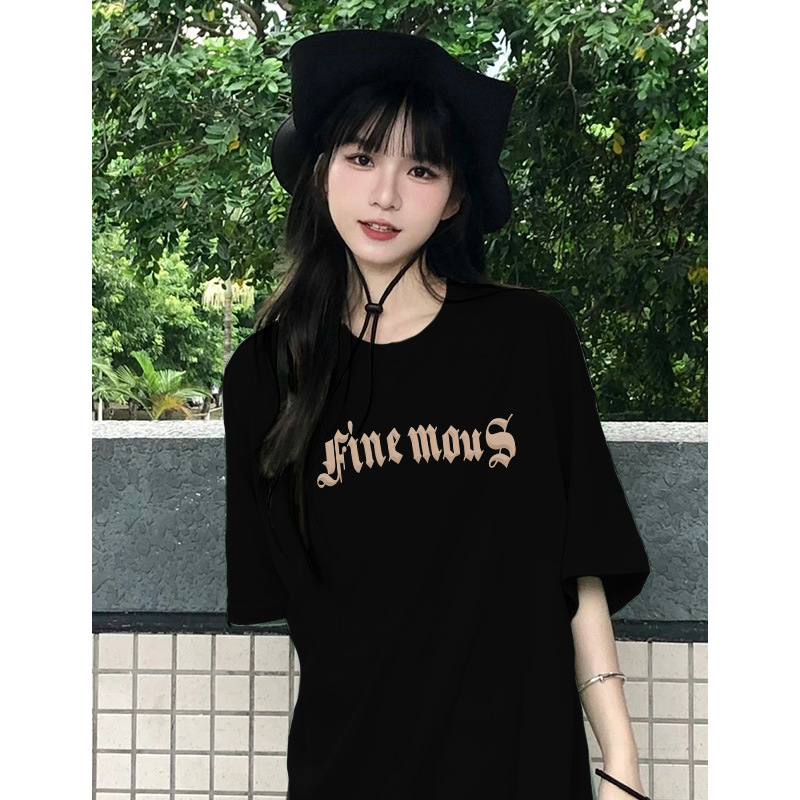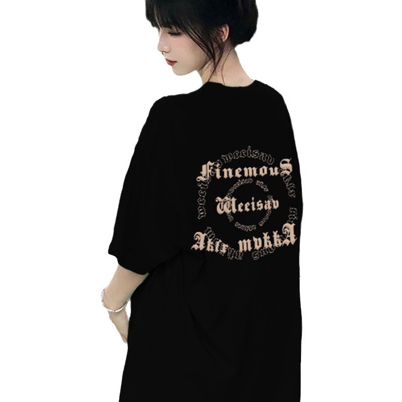 美式复古街头风正肩纯棉黑色短袖T恤女春季oversize打底衫上衣ins
