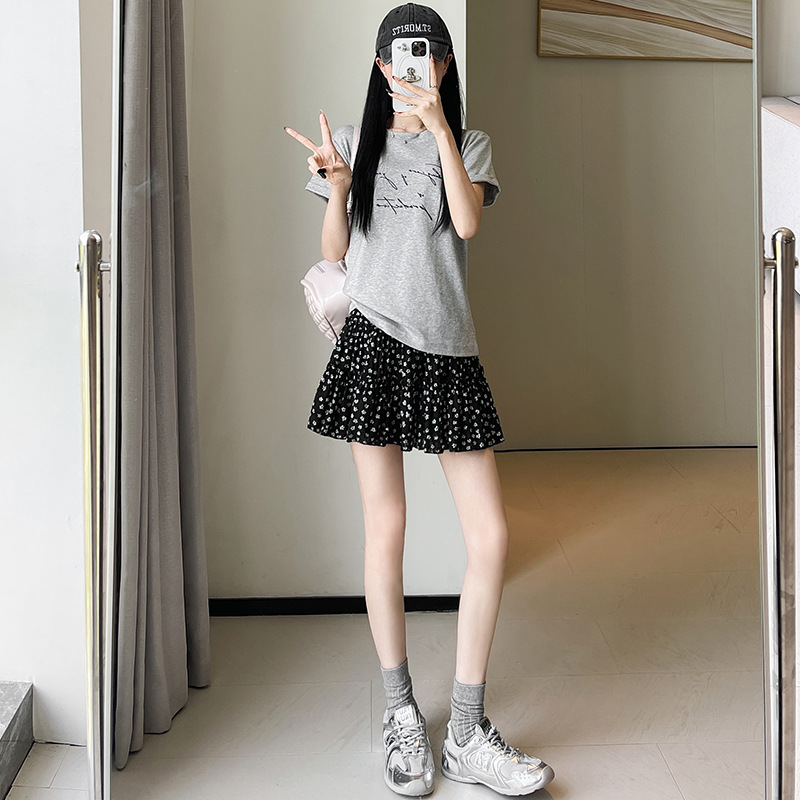 黑色小碎花短裙女夏季新款小个子高腰显瘦a字法式复古蛋糕半身裙