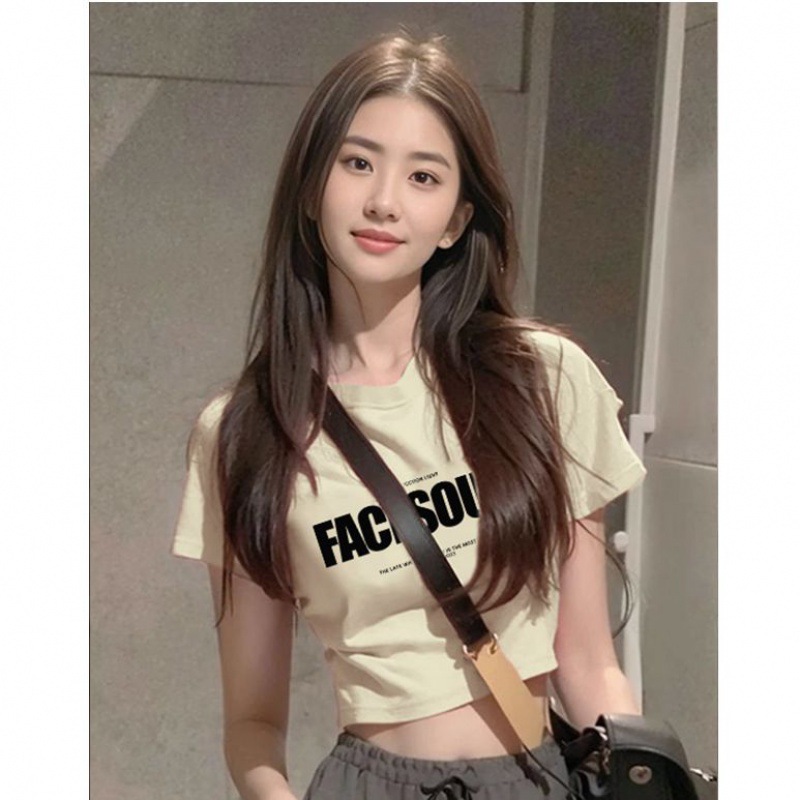 短款短袖小众设计感夏装新款女小众收腰设计感正肩紧身短上衣