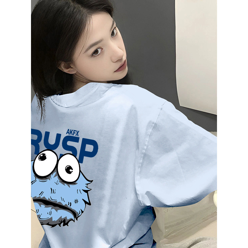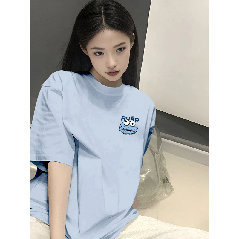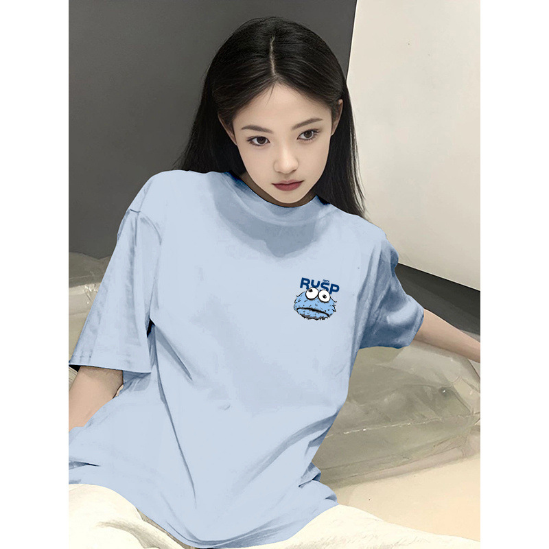 宽松正肩棉圆领短袖T恤女年夏季新款oversize打底上衣