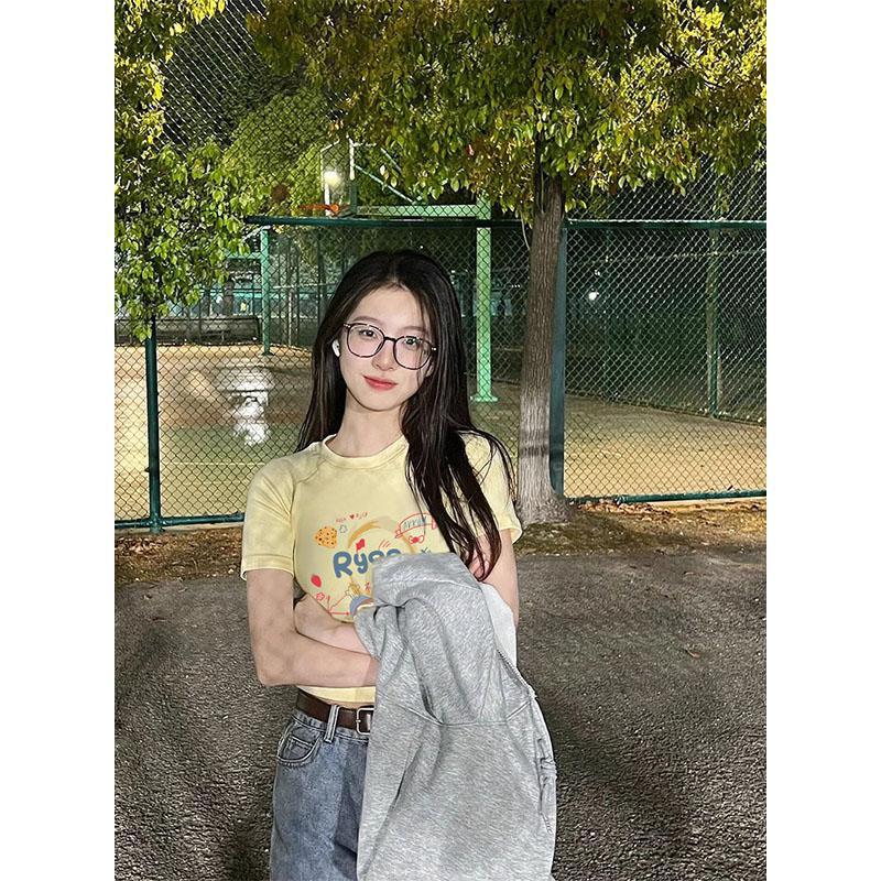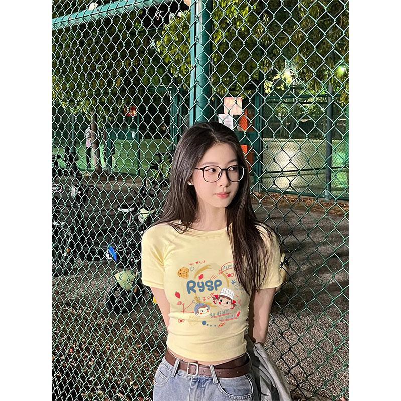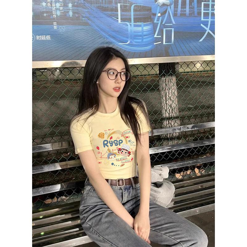美式短款短袖t恤女年夏季爆款正肩紧身收腰辣妹风小个子上衣