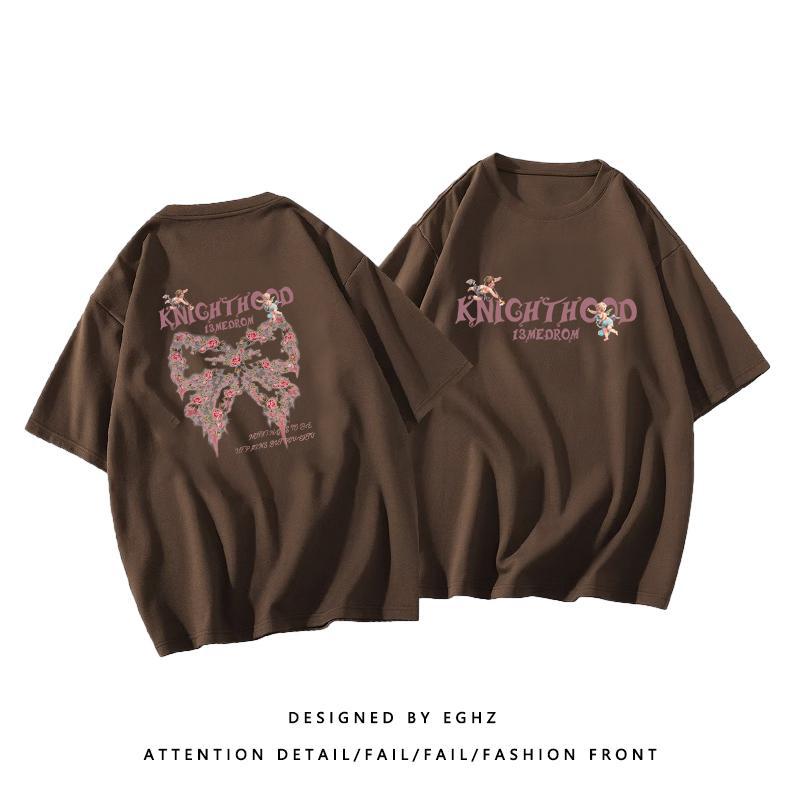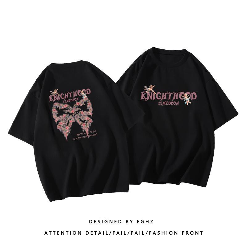 美式重磅短袖新款t恤女装慵懒宽松独特别致绝美小众漂亮上衣
