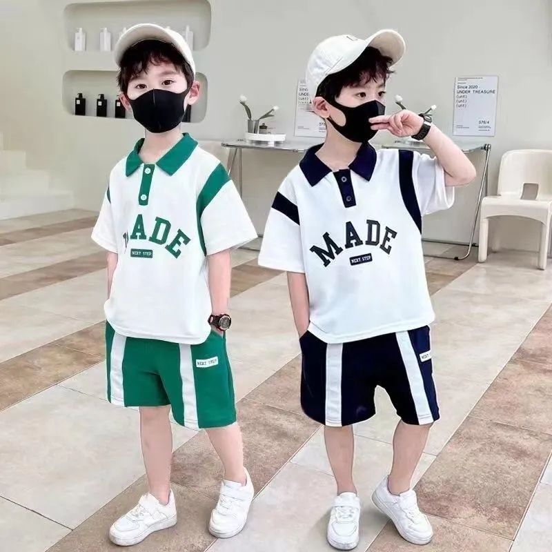 男童夏季套装2025新款酷酷帅气男孩子POLO衫短裤炸街儿童两件套装