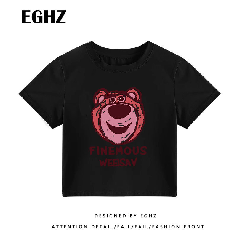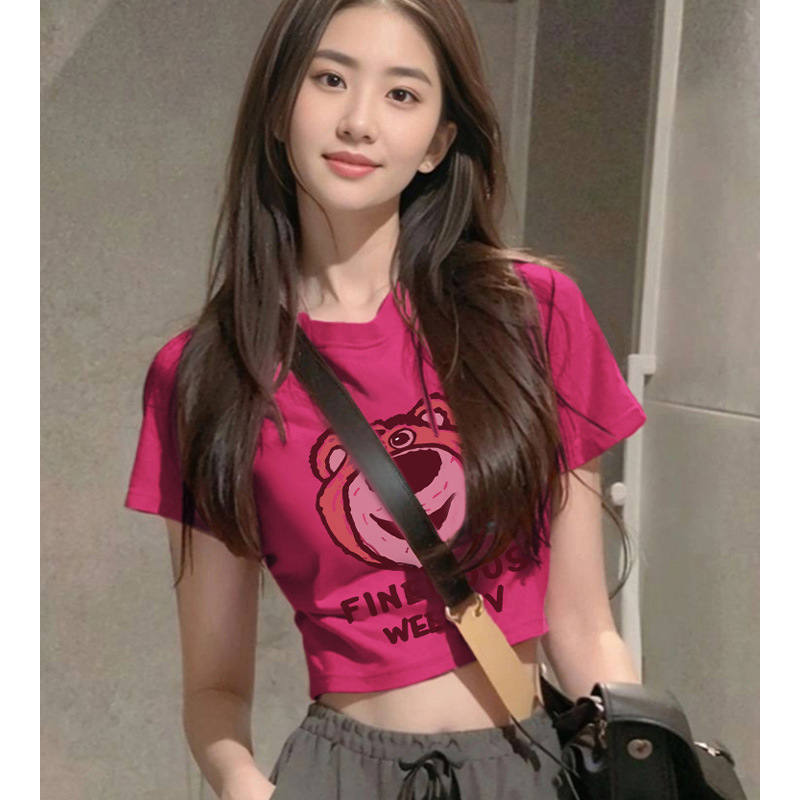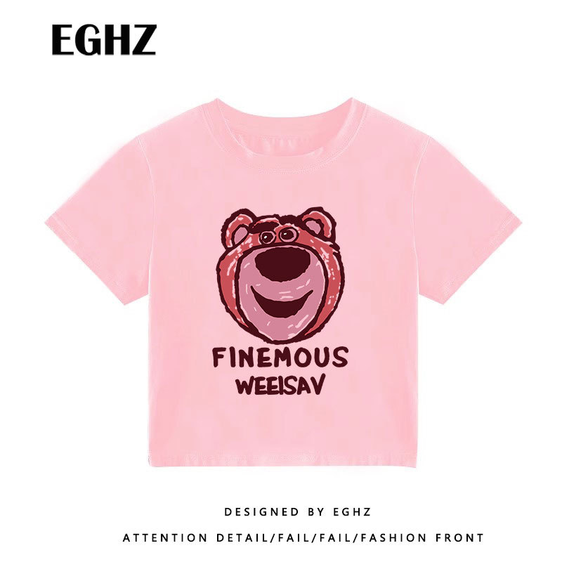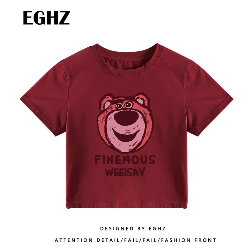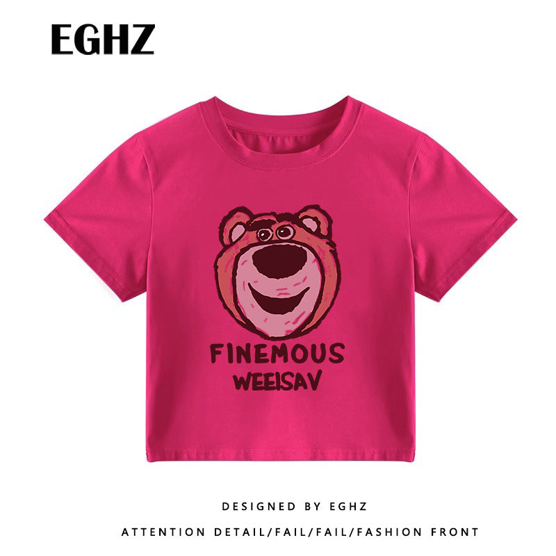 法式甜辣风多巴胺短袖t恤女设计感小众别致玫红色辣妹bm纯棉上衣