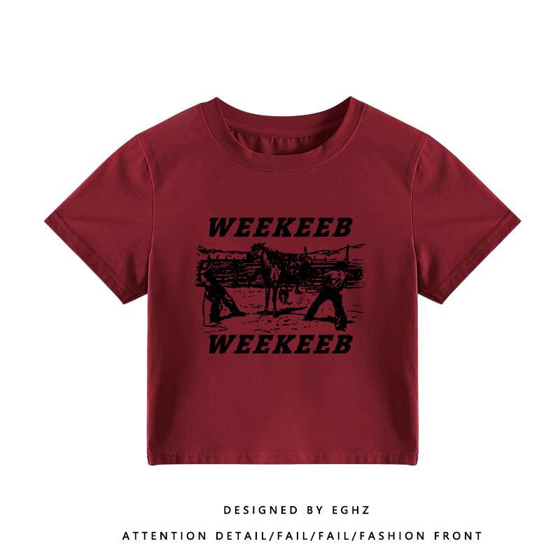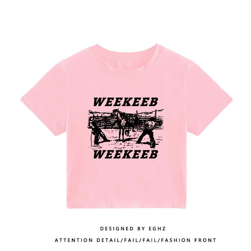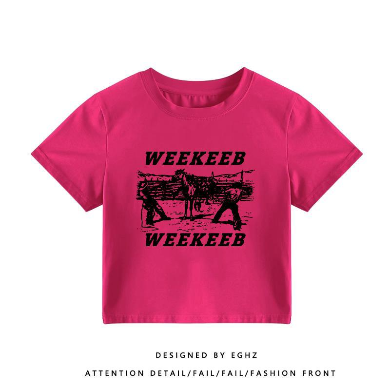 玫红色纯棉短袖t恤女多巴胺设计感小众别致独特美式辣妹bm短上衣