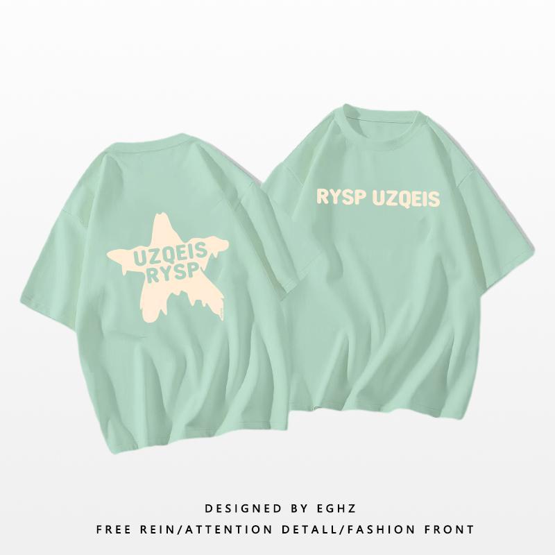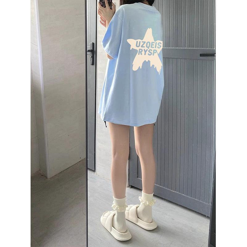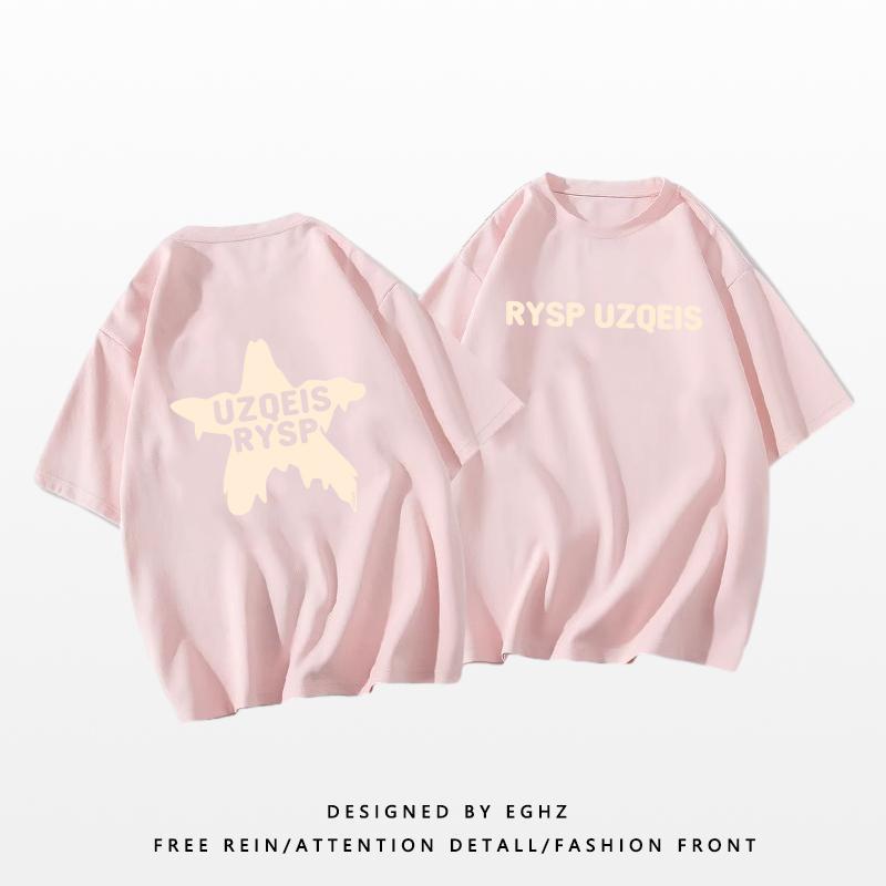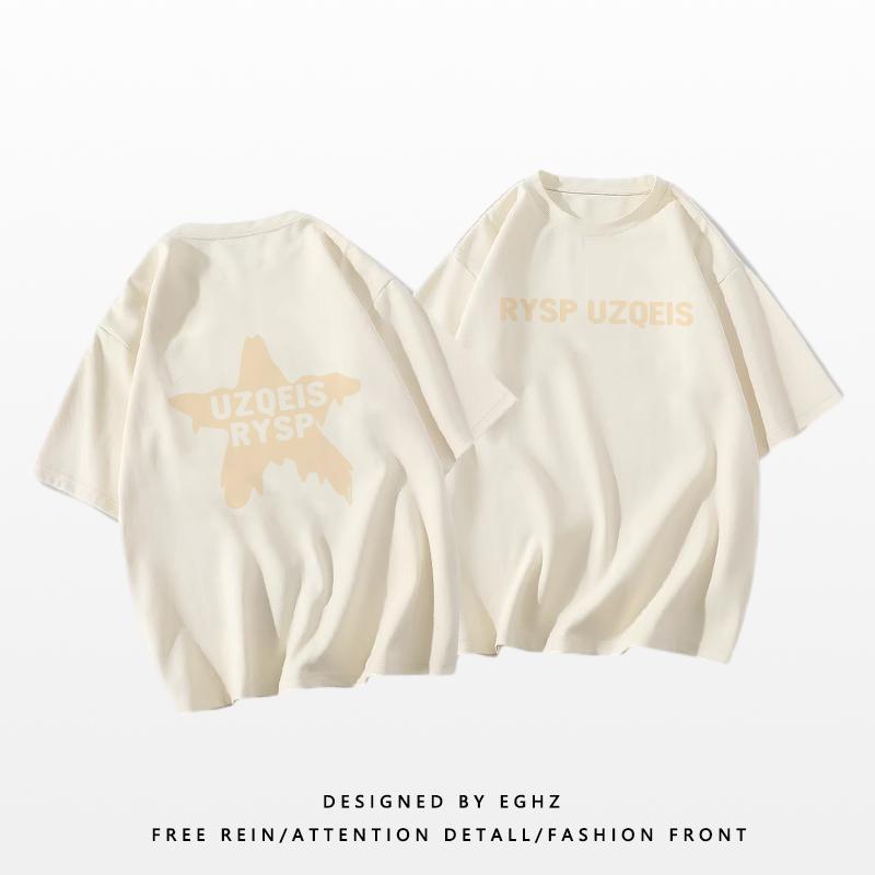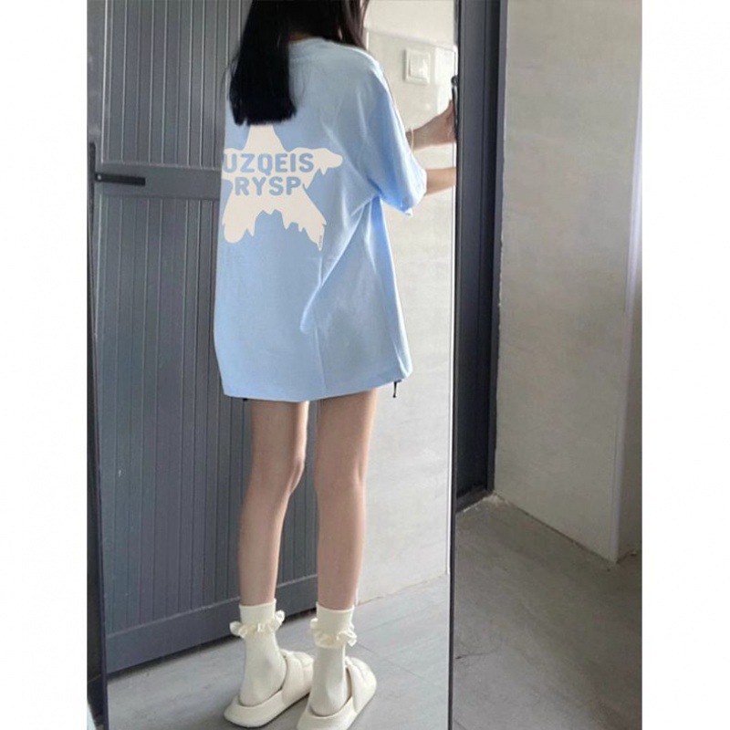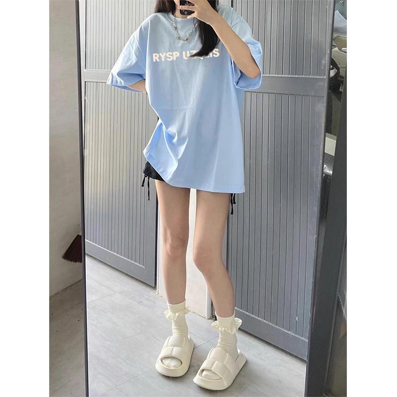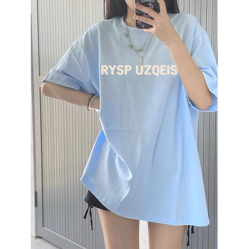 蓝色重磅纯棉短袖t恤潮牌半袖女夏季新款美式宽松上衣情侣装