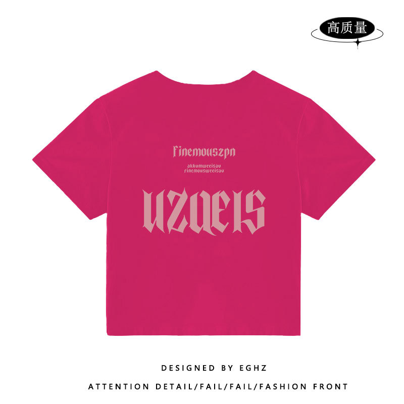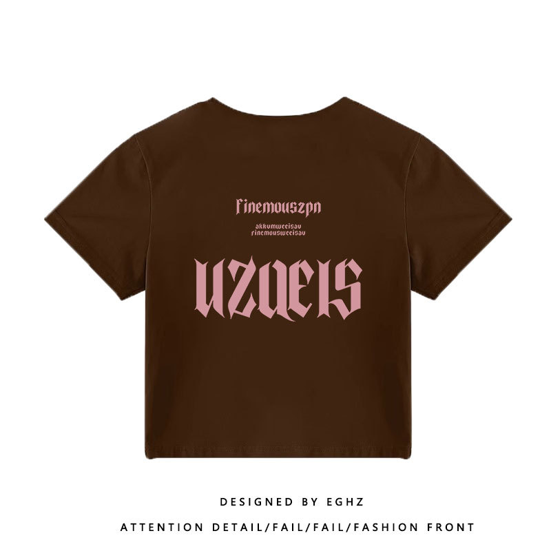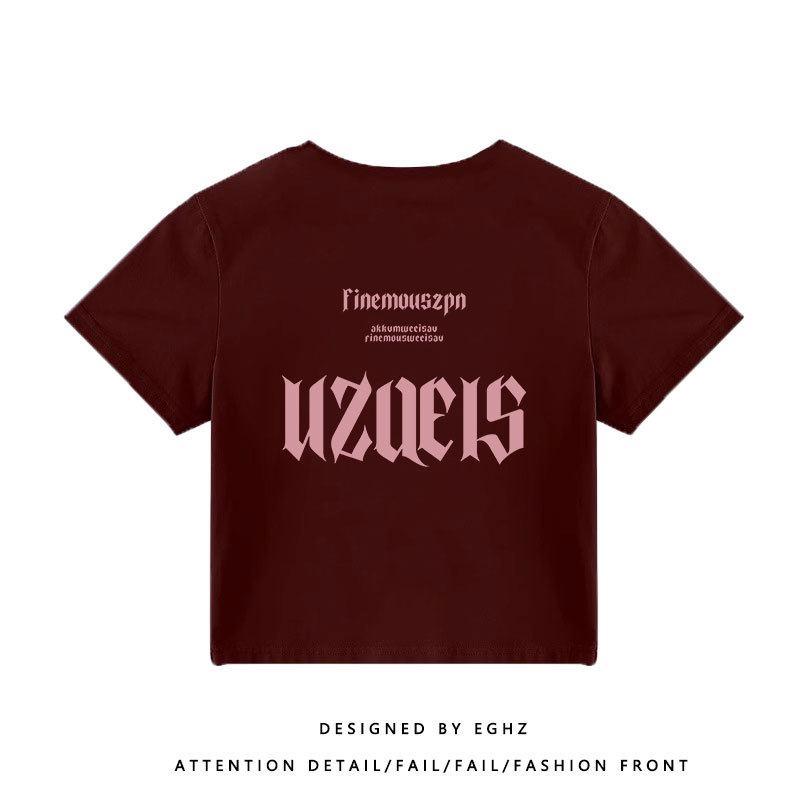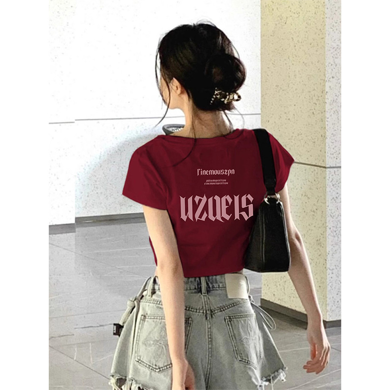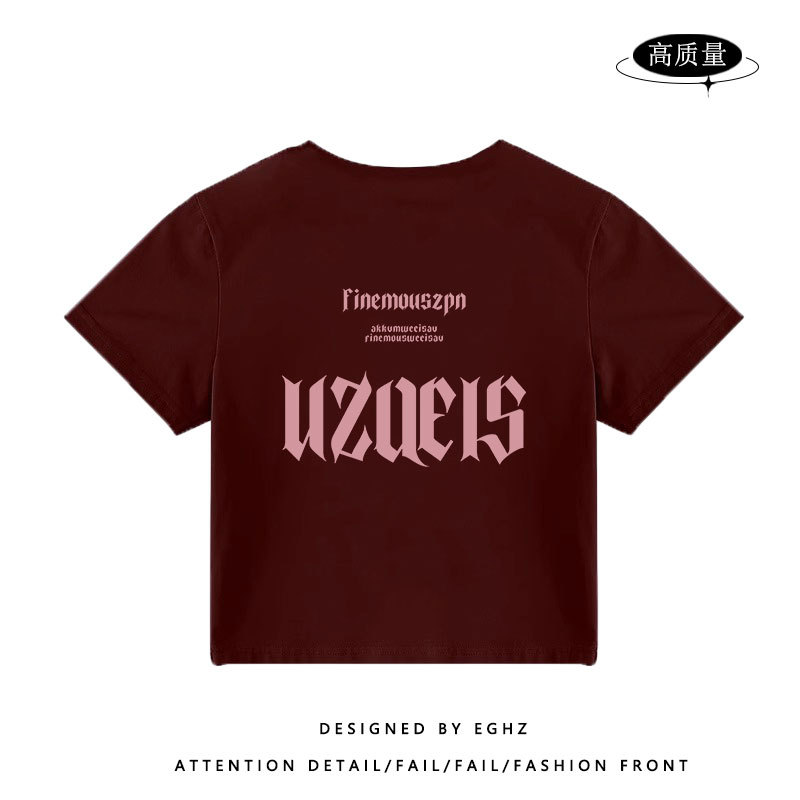 酒红色短款短袖t恤女新款夏季辣妹穿搭纯欲风别致绝美小上衣