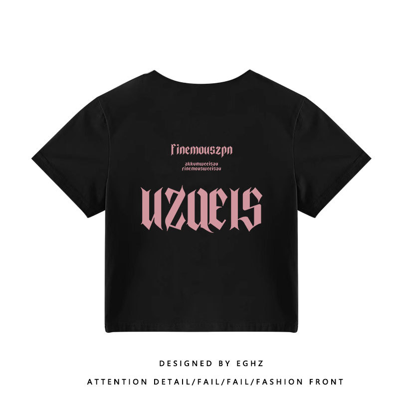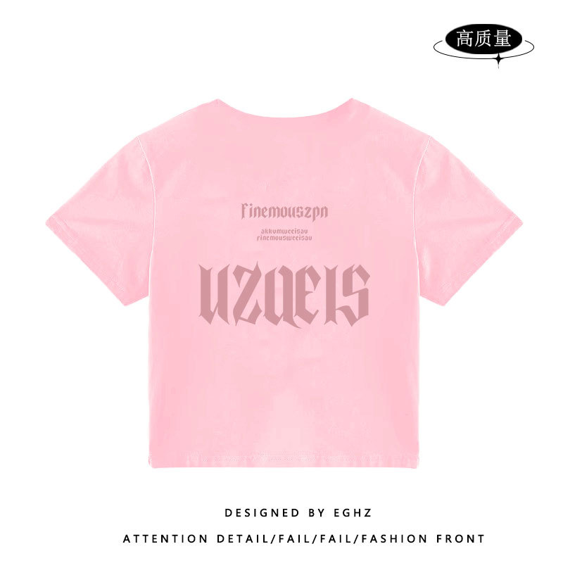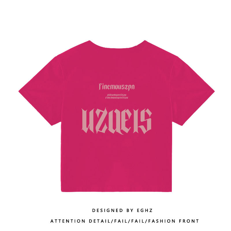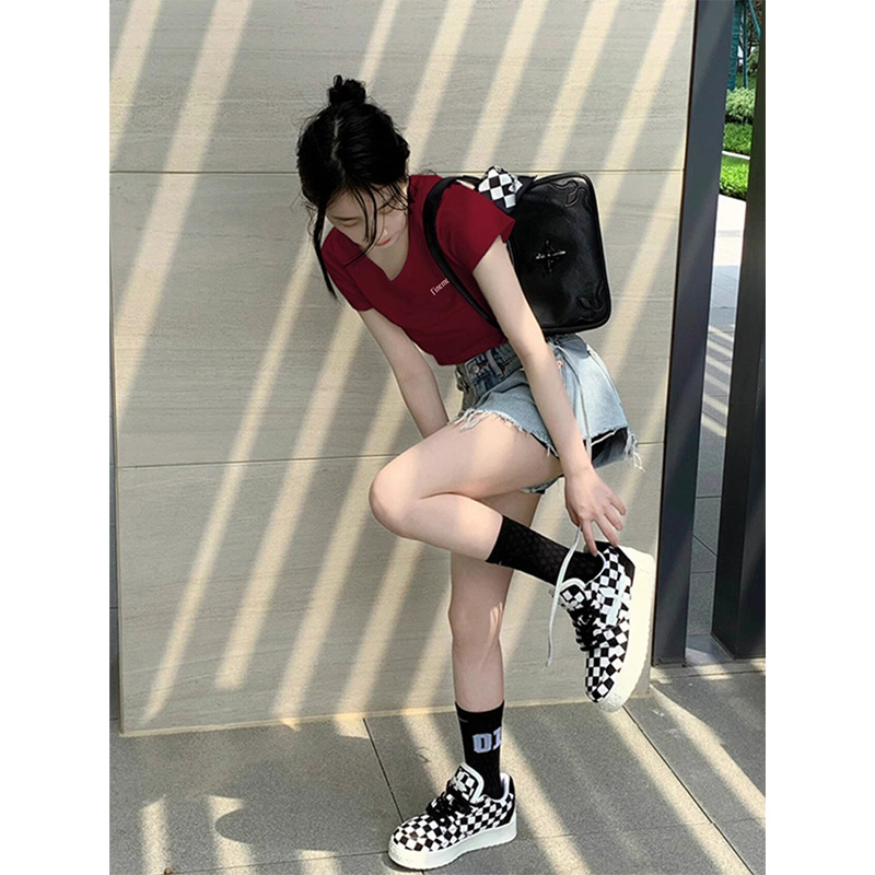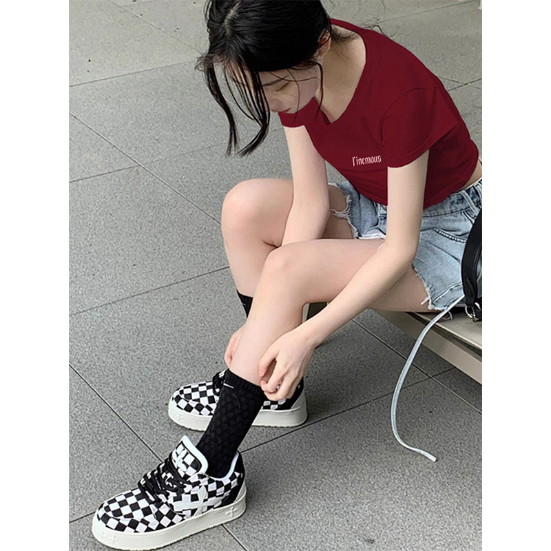 酒红色短款短袖t恤女新款夏季辣妹穿搭纯欲风别致绝美小上衣