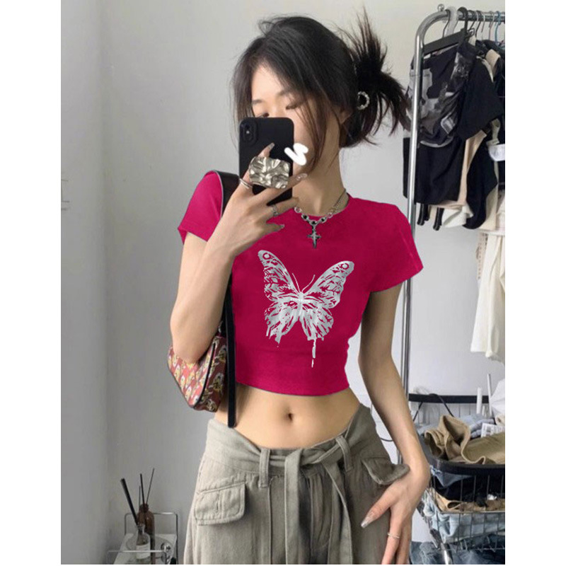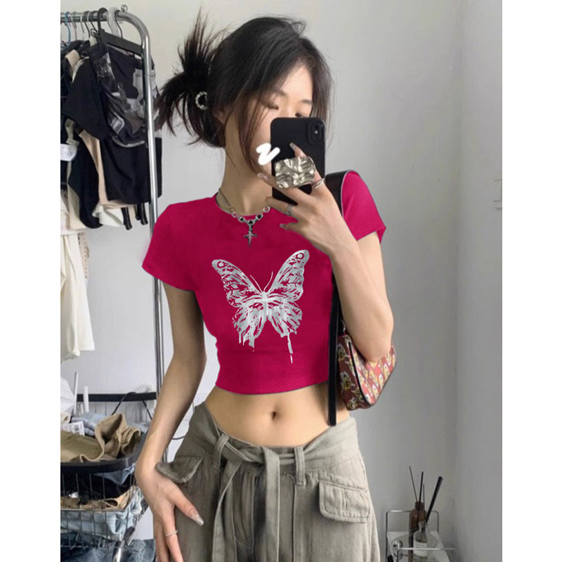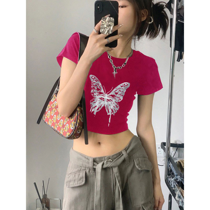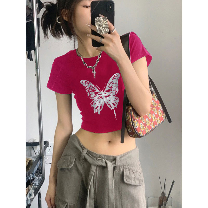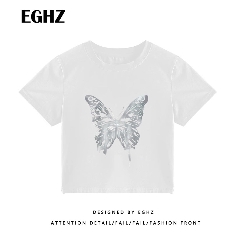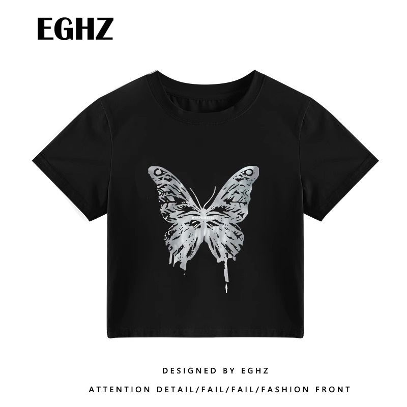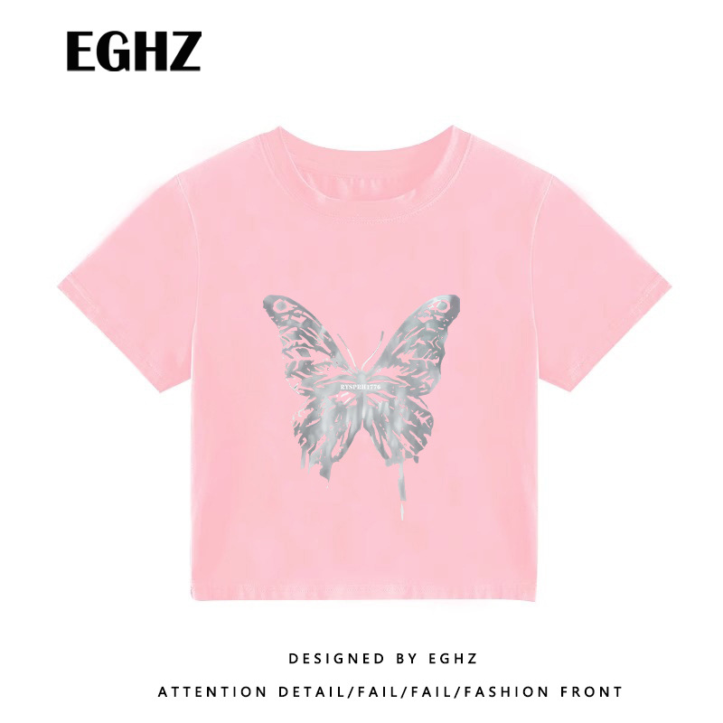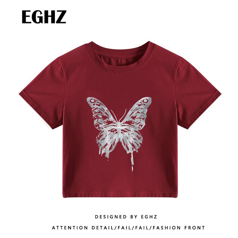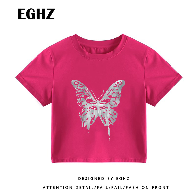 收腰女新款早春短款甜酷辣妹风短袖t恤【32支纯棉螺纹面料】
