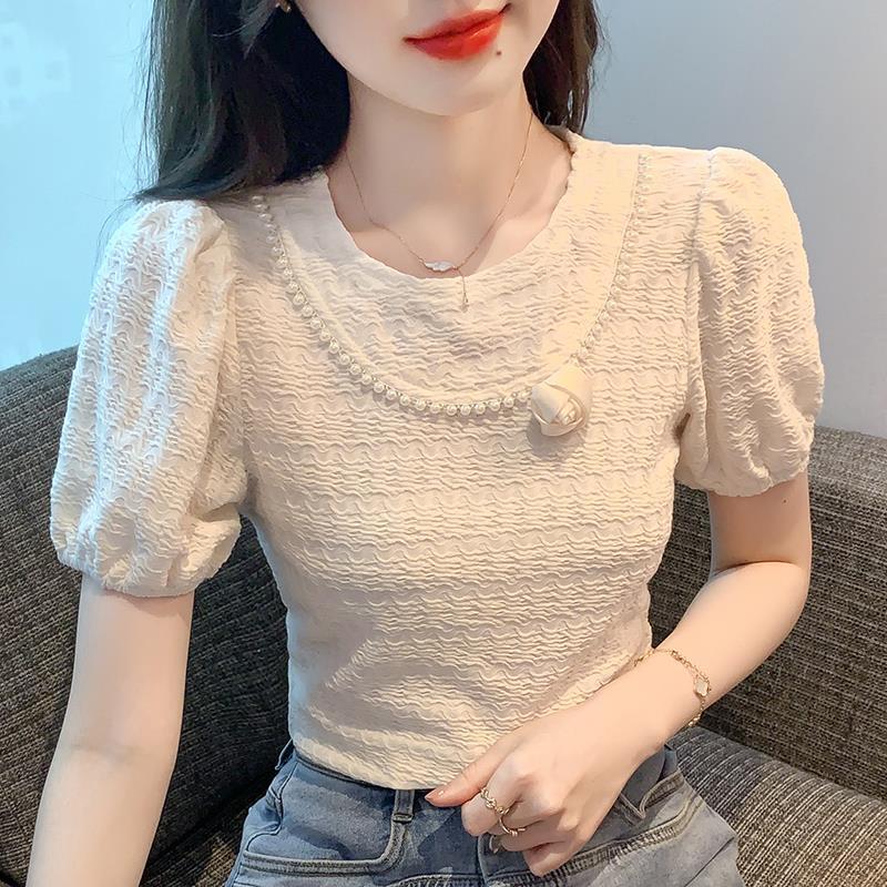夏季新款时尚百搭设计感小众独特别致短袖高级感蕾丝衬衫女