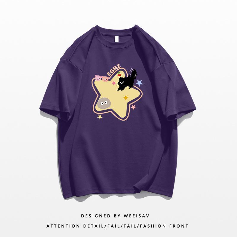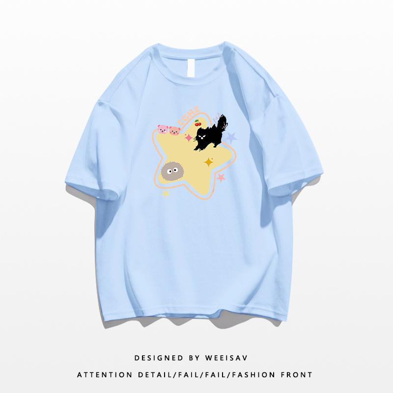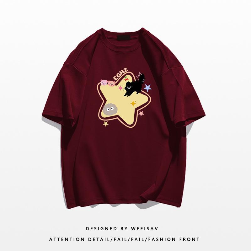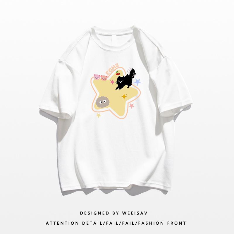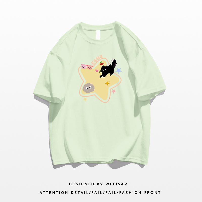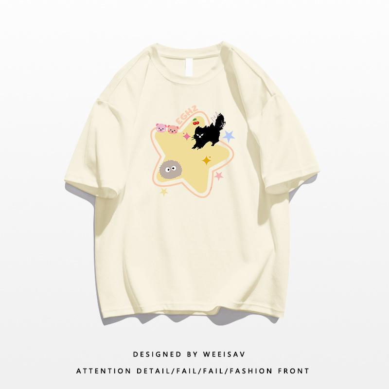 多巴胺棉正肩短袖T恤女年夏季新款小个子宽松圆领上衣
