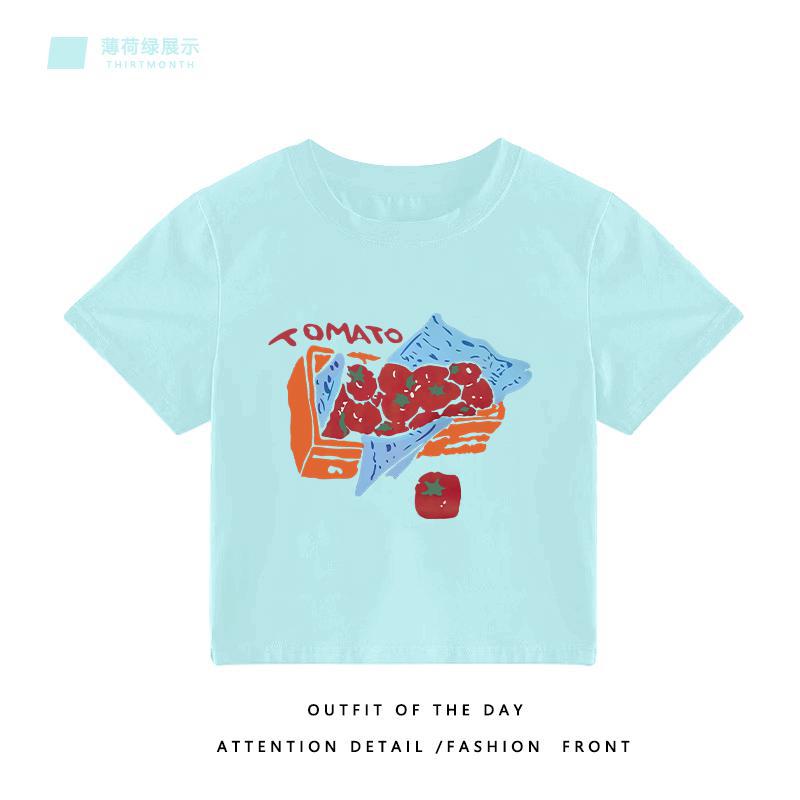 修身显瘦短款短袖t恤女年夏季新款小众时尚多巴胺辣妹小上衣