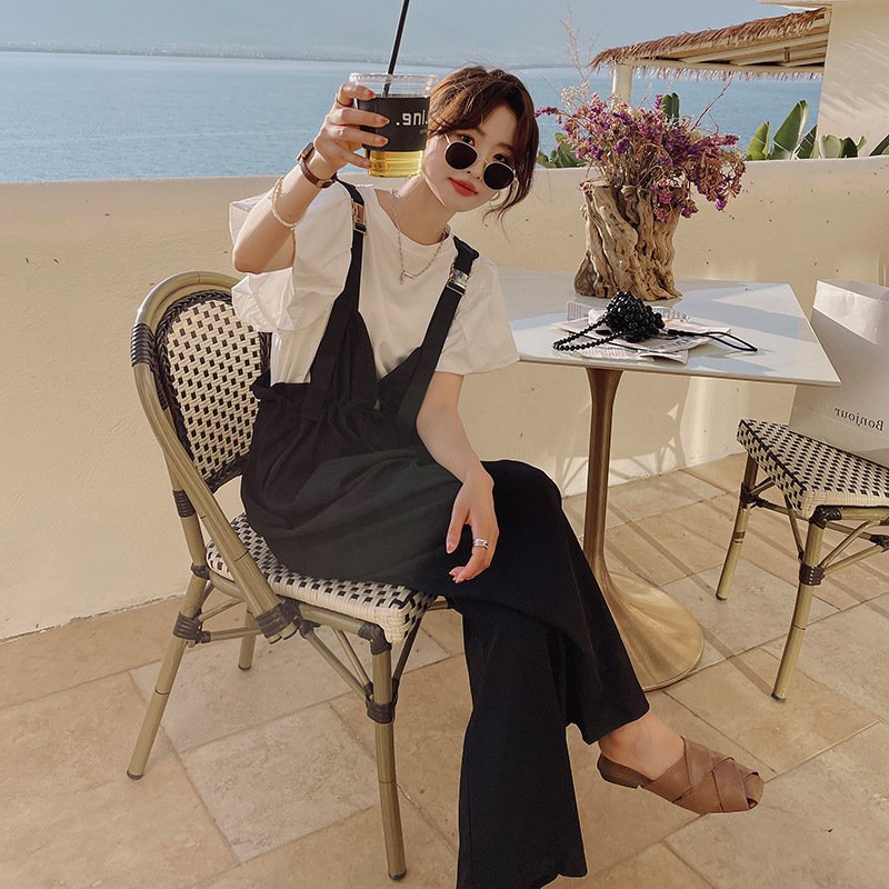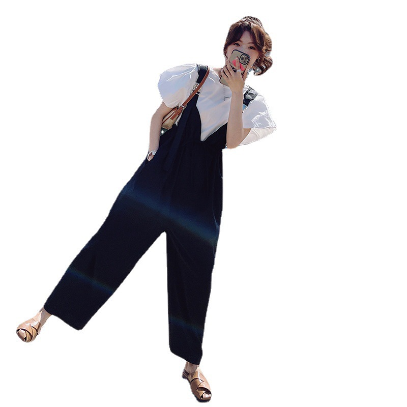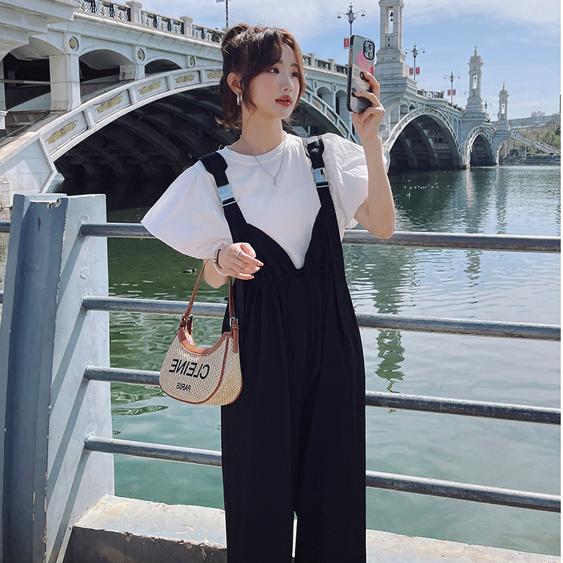 实拍新款网红炸街时尚减龄chi休闲背带裤套装女酷盐系穿搭两件套