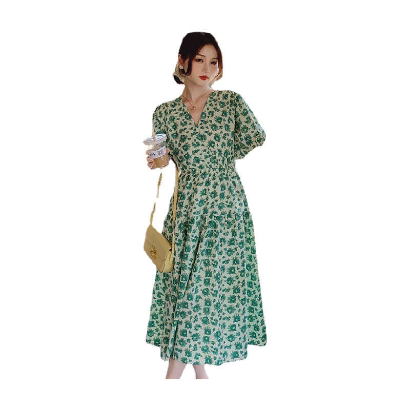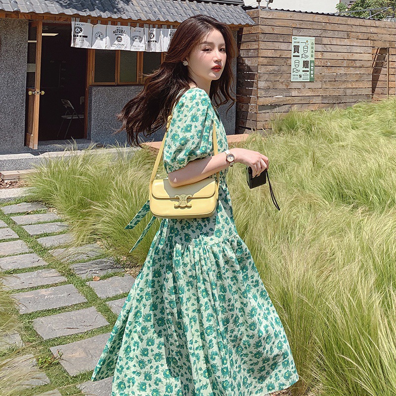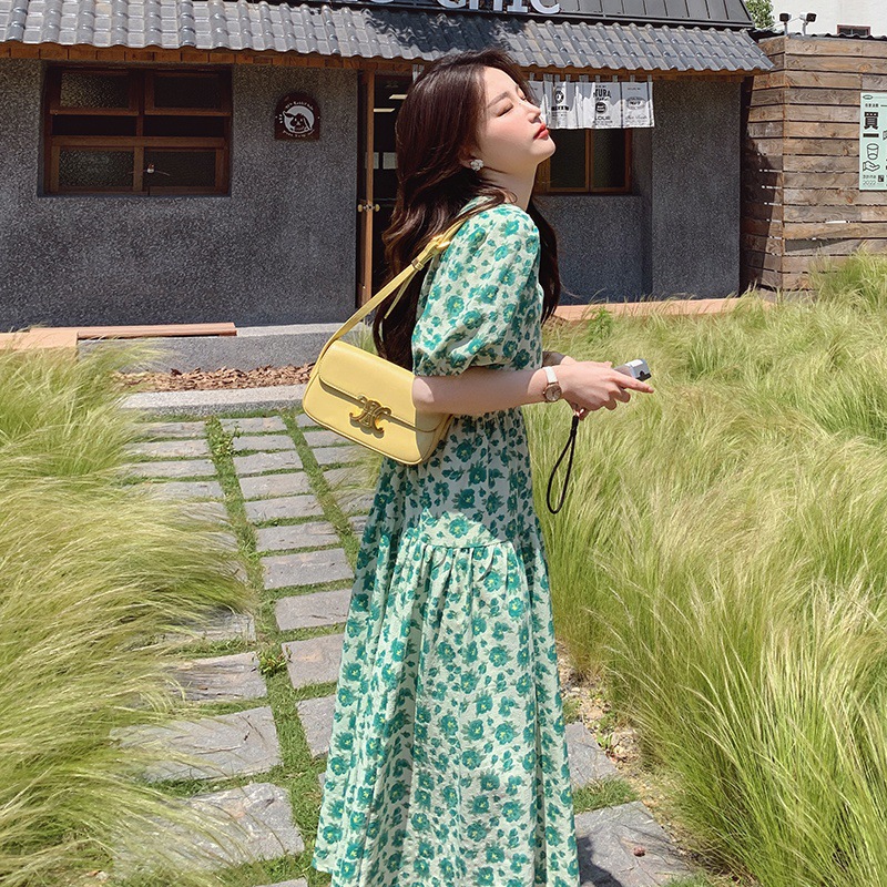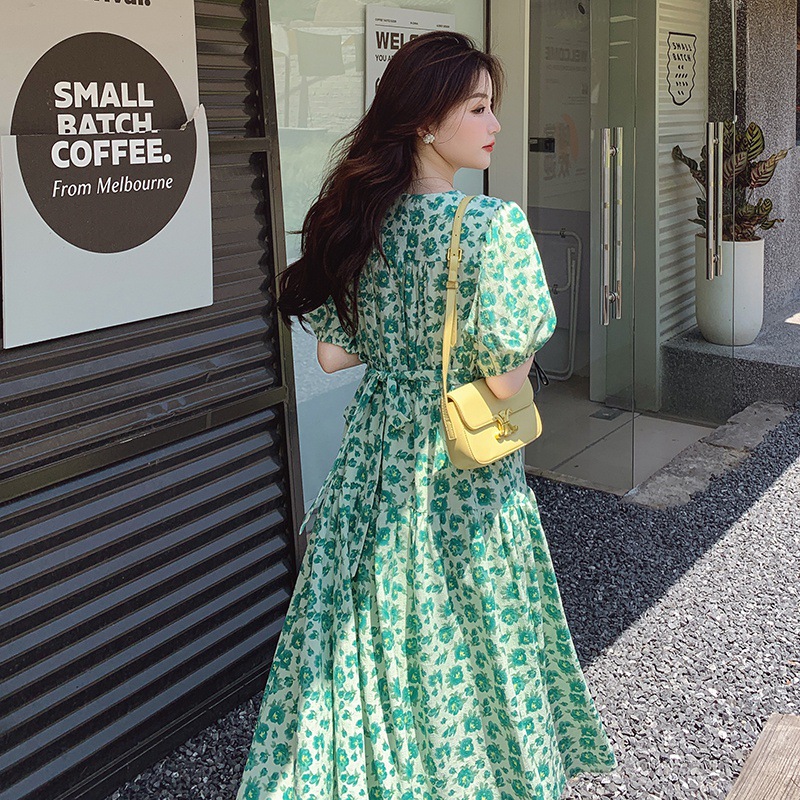 盐系法式复古碎花连衣裙女夏新款气质收腰显瘦雪纺初恋长裙子