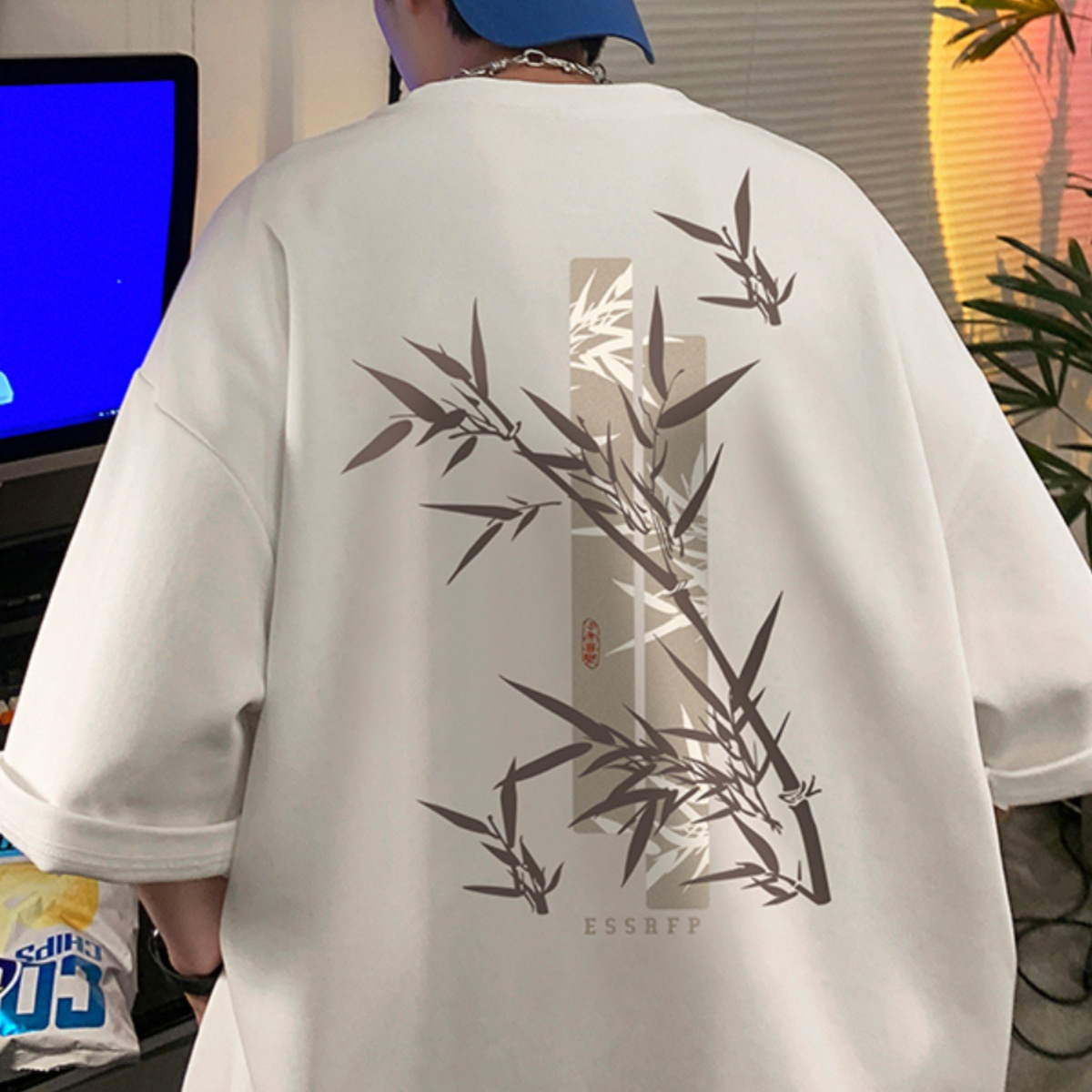 国潮风短袖t恤纯棉港风设计感印花短袖t恤男宽松美式炸街情侣半袖