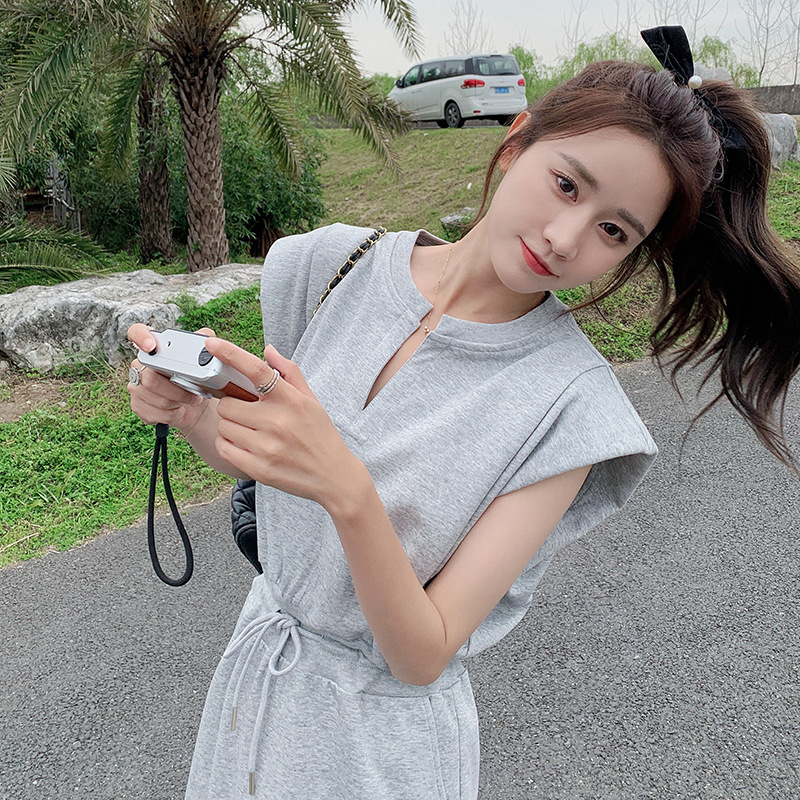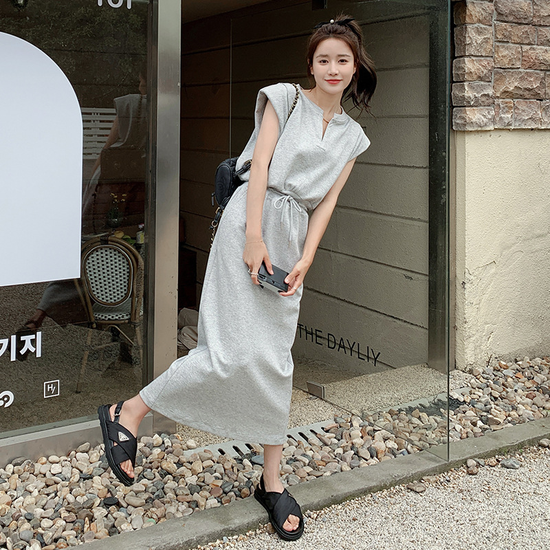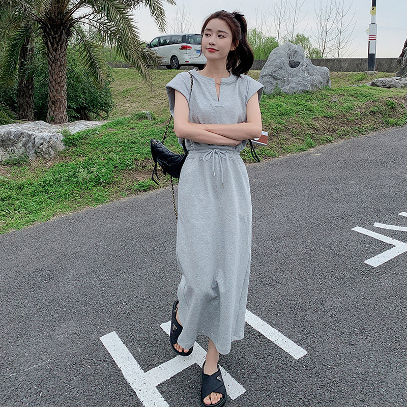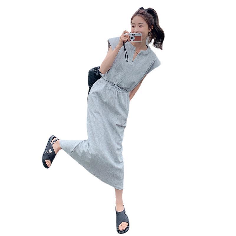 小众设计感收腰显瘦灰色卫衣裙女夏季韩版减龄长款连衣裙休闲长裙