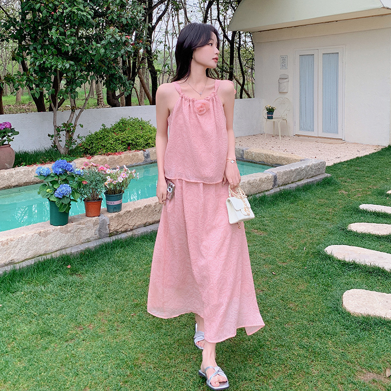 夏新款法式浪漫氛围感度假仙美两件套吊带上衣高腰双层半身裙套装