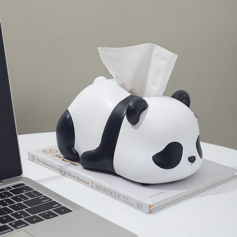 创意可爱熊猫纸巾盒客厅装饰品摆件茶几家用抽纸盒手工树脂工艺品