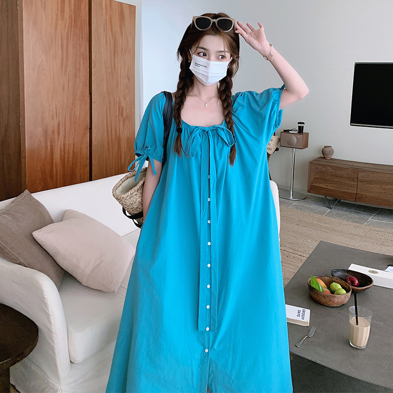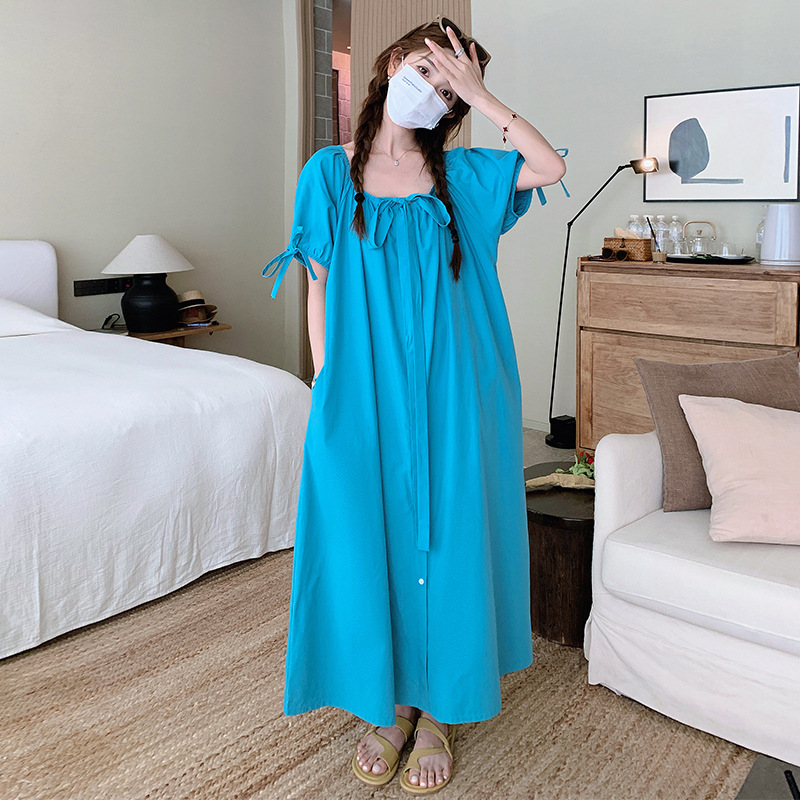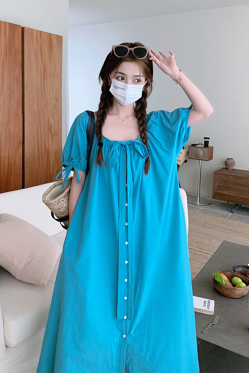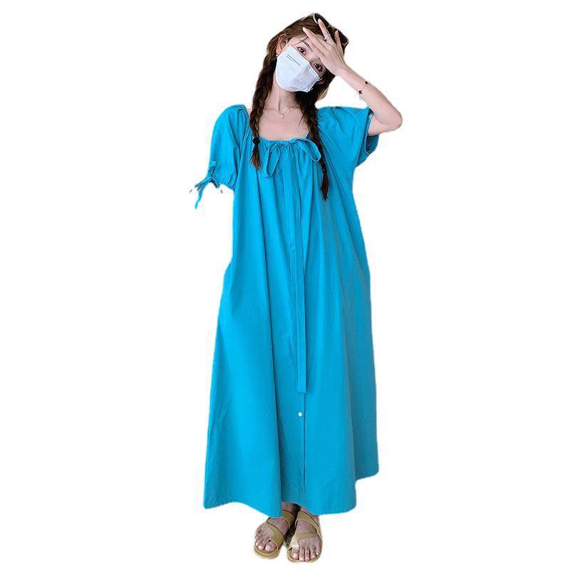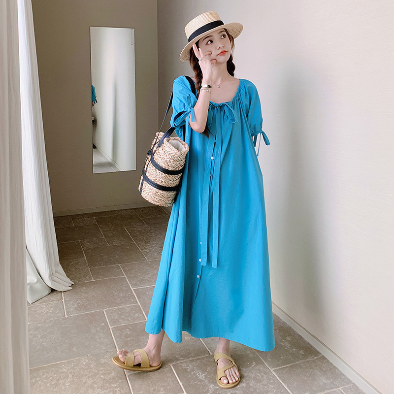 两种穿法蓝色夏季宽松连衣裙长裙