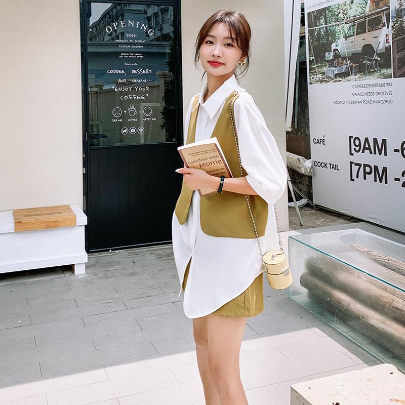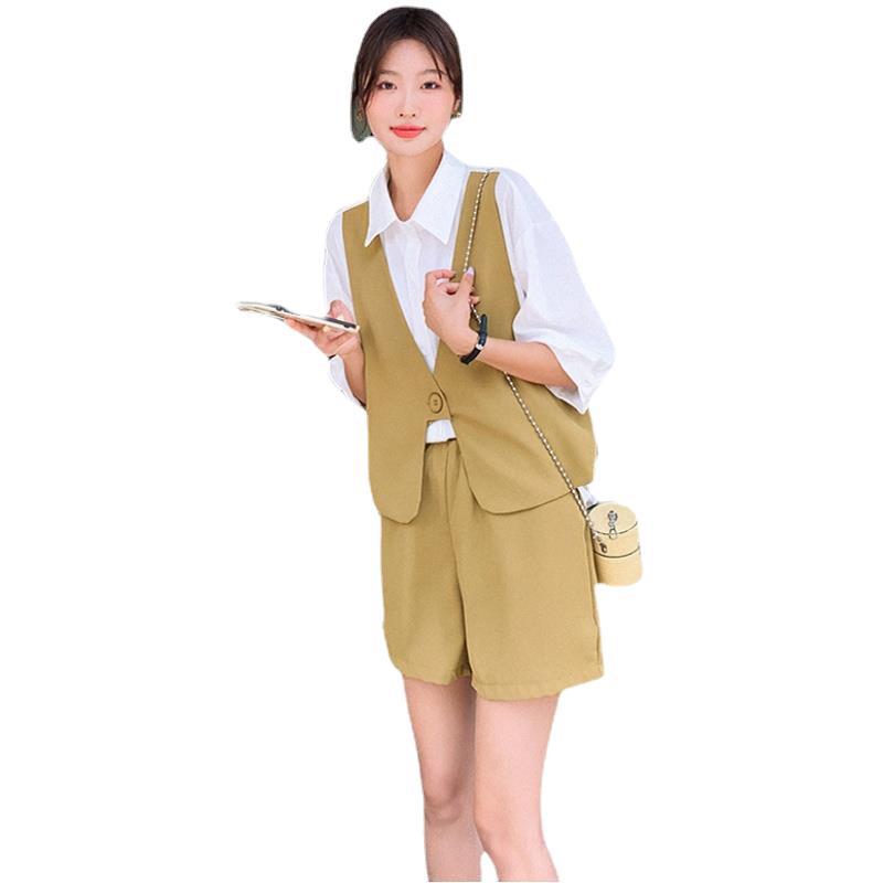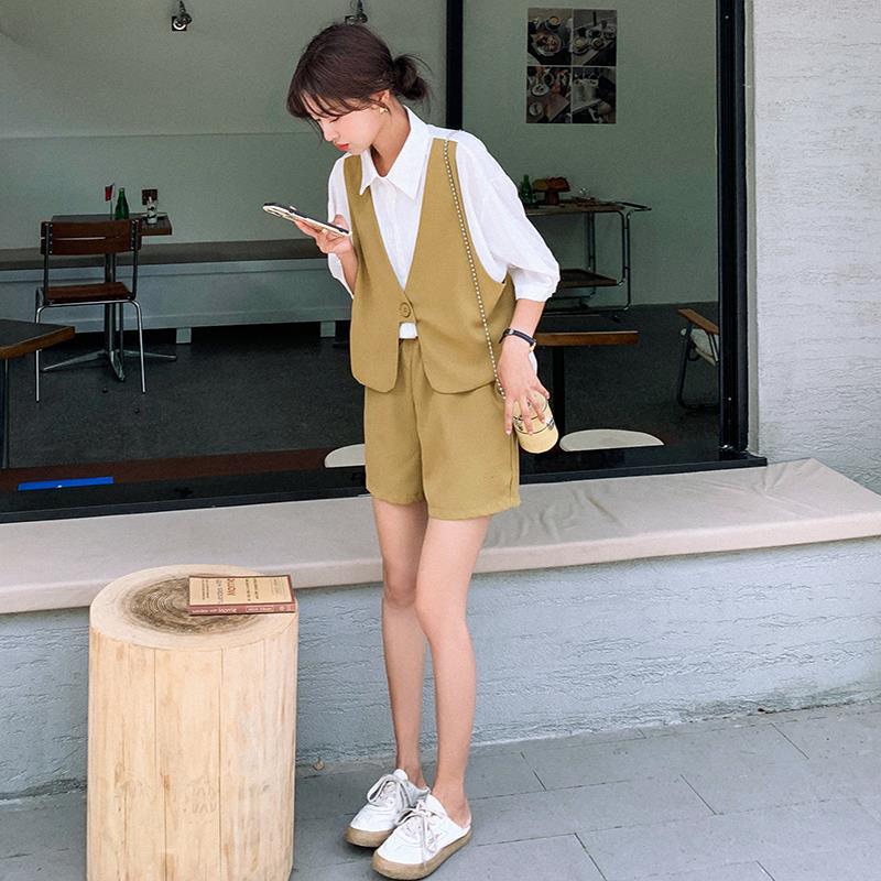夏季新款微胖显瘦遮肉小个子茶系穿搭搭配一整套奶系两件套女