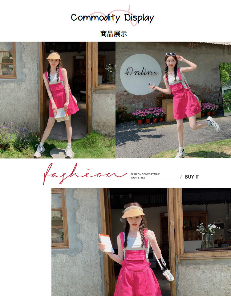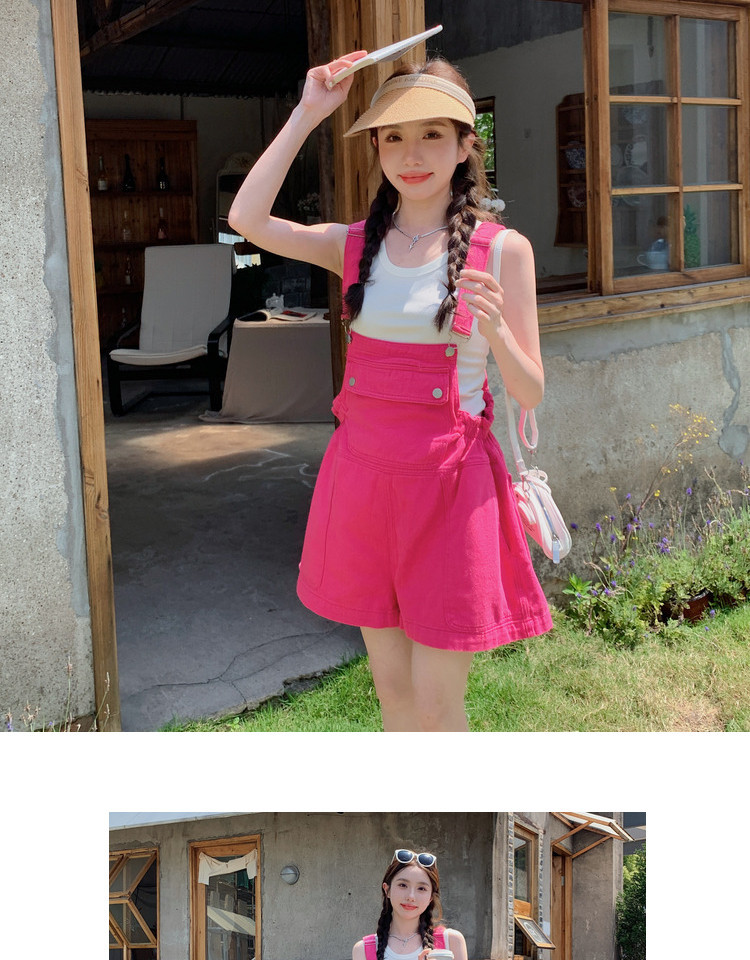 玫粉色小个子学院风背带裤女夏季新款高腰减龄设计感阔腿短裤